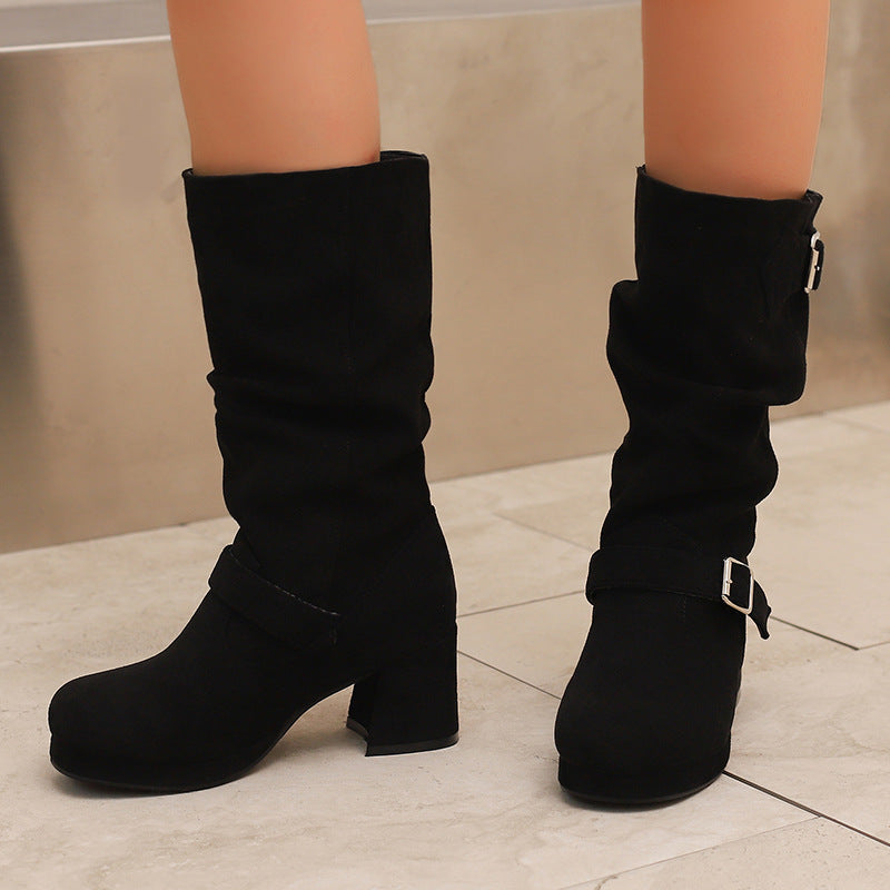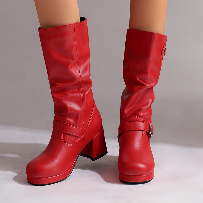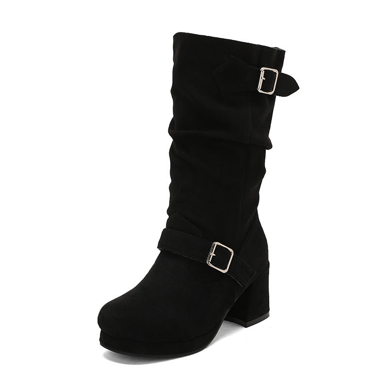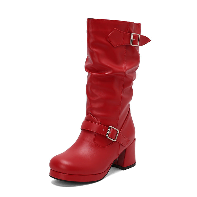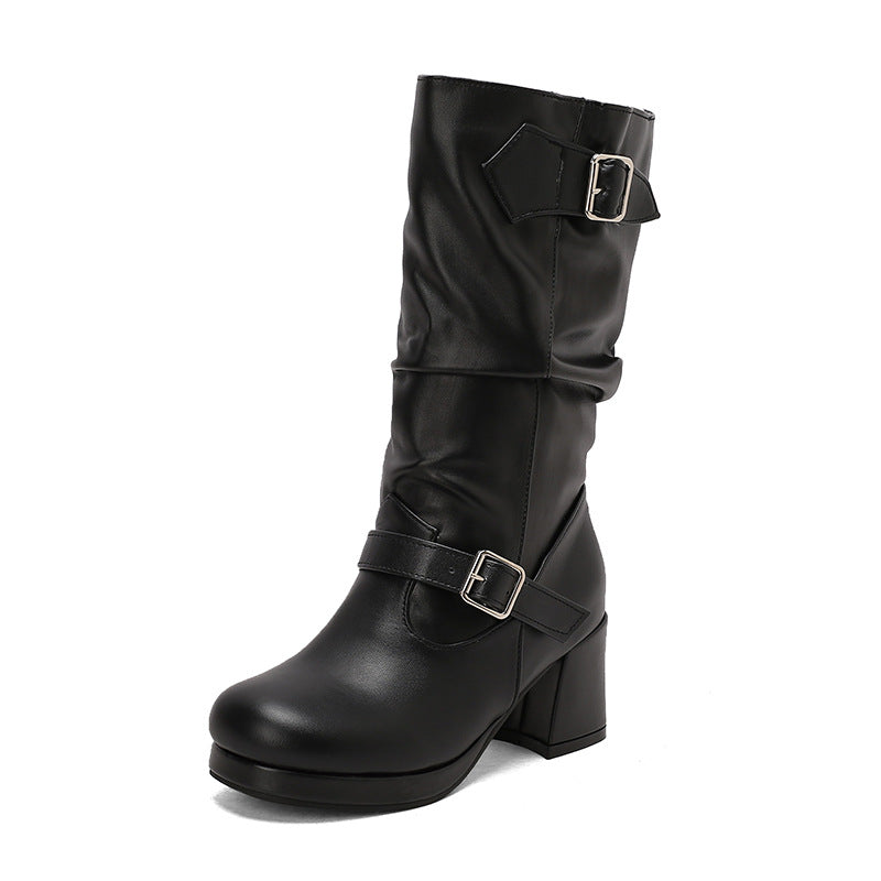 Uppfinningsrik Bältesdetalj: Ett dekorativt bälte med spänne ger stövlarna en särskild touch och ger en modebetonad accent.