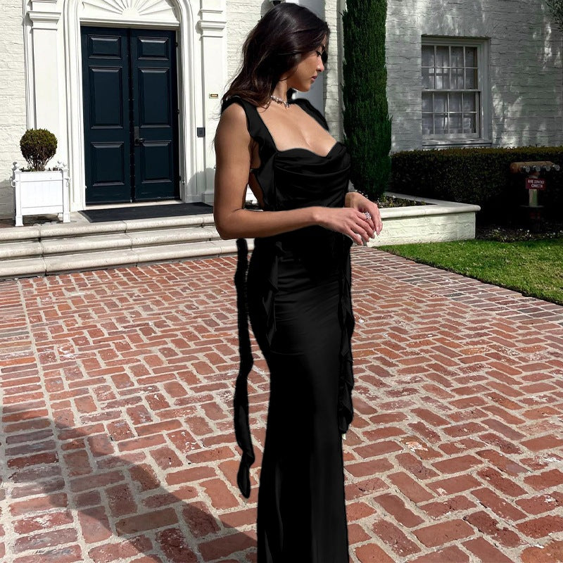 Högkvalitativt Material: Tillverkad av satinliknande tyg, erbjuder klänningen en mjuk känsla och en ädel lyster.