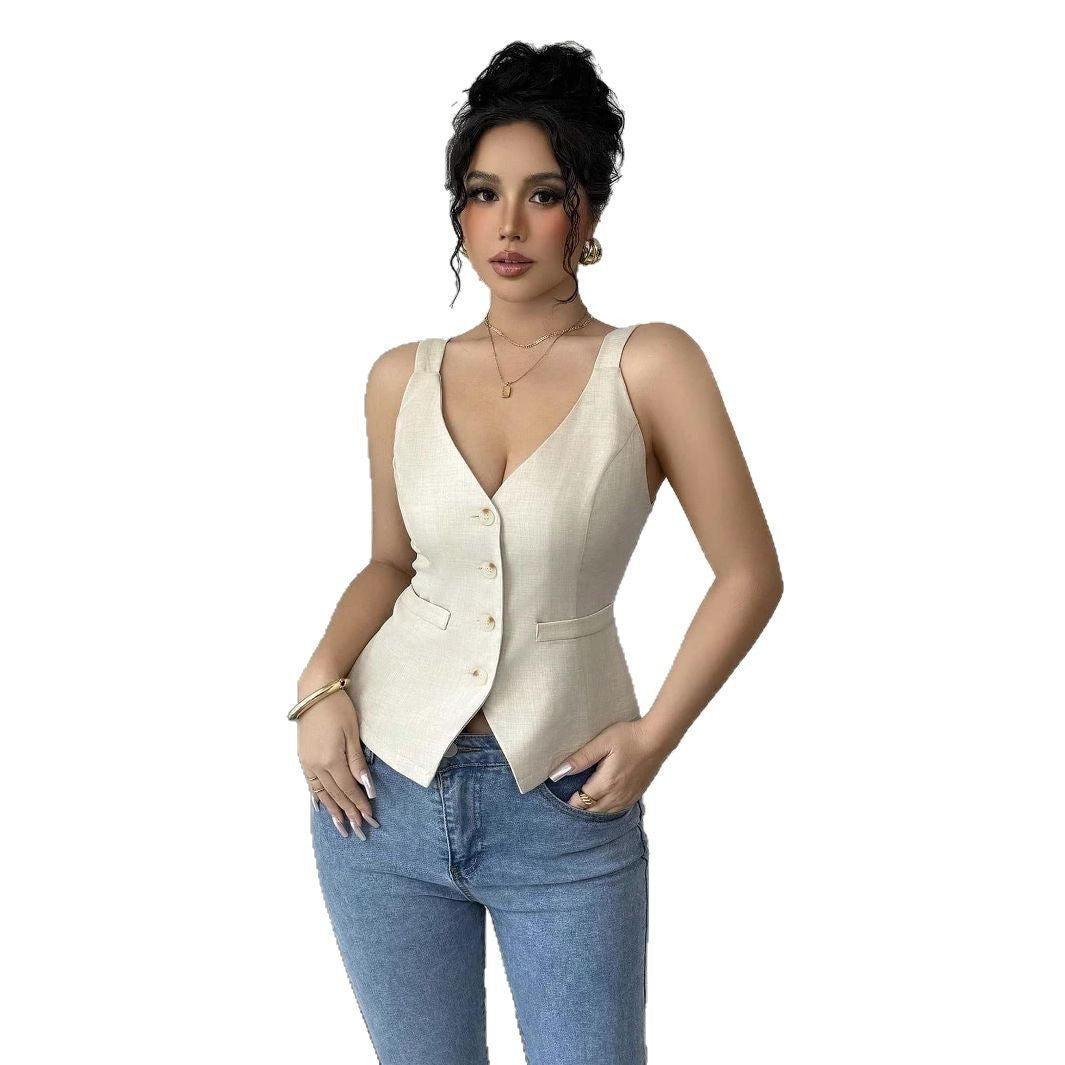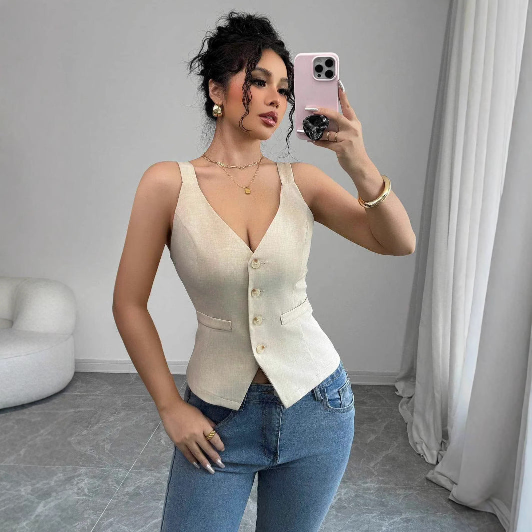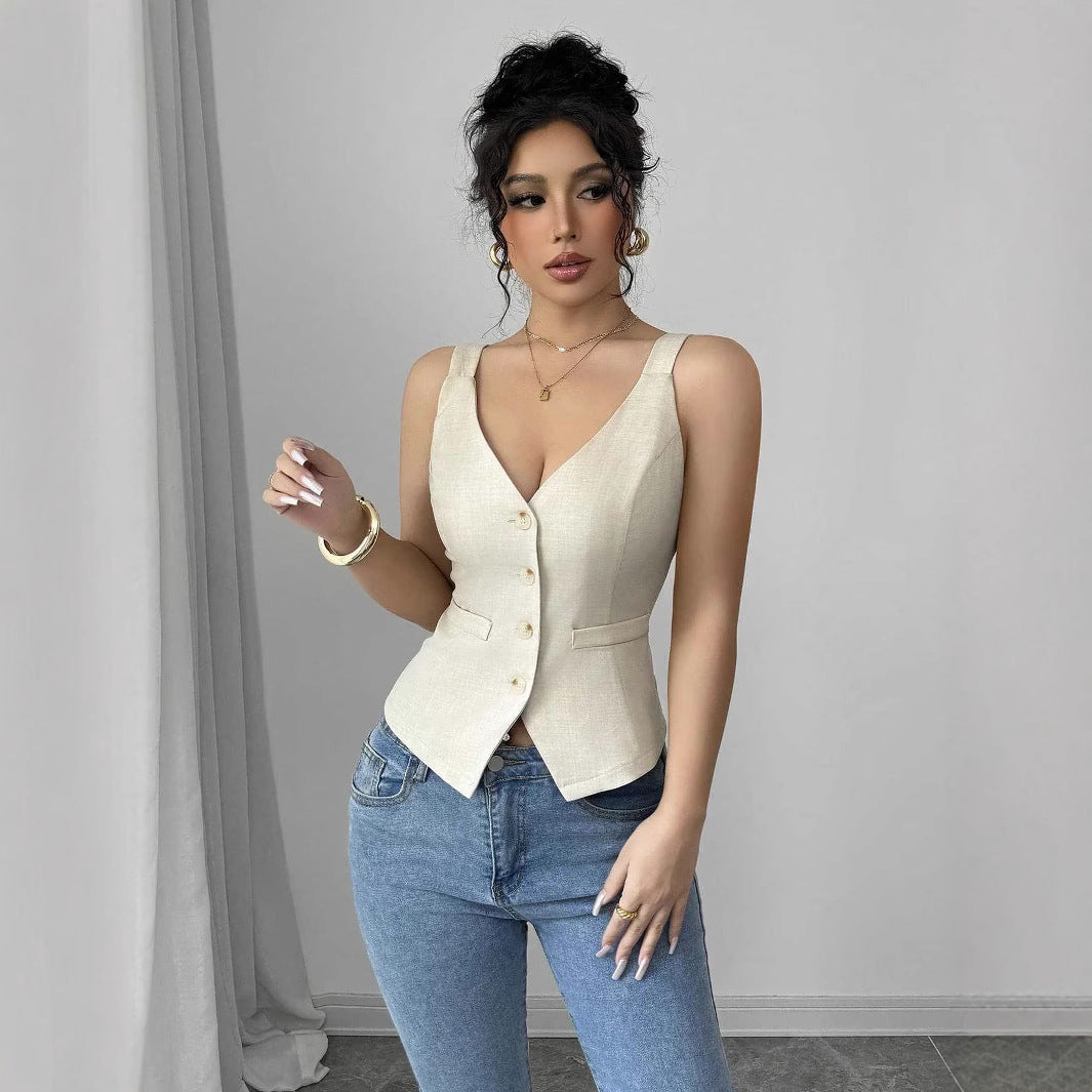 Sofistikerad design: Västen har en figursydd skärning som framhäver silhuetten på ett fördelaktigt sätt.
