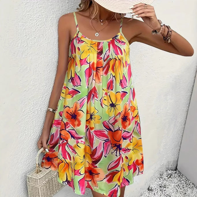Damer sommarklänning i lätt, andningsbar tyg med färggårdigt blommönster Eva Jonsson