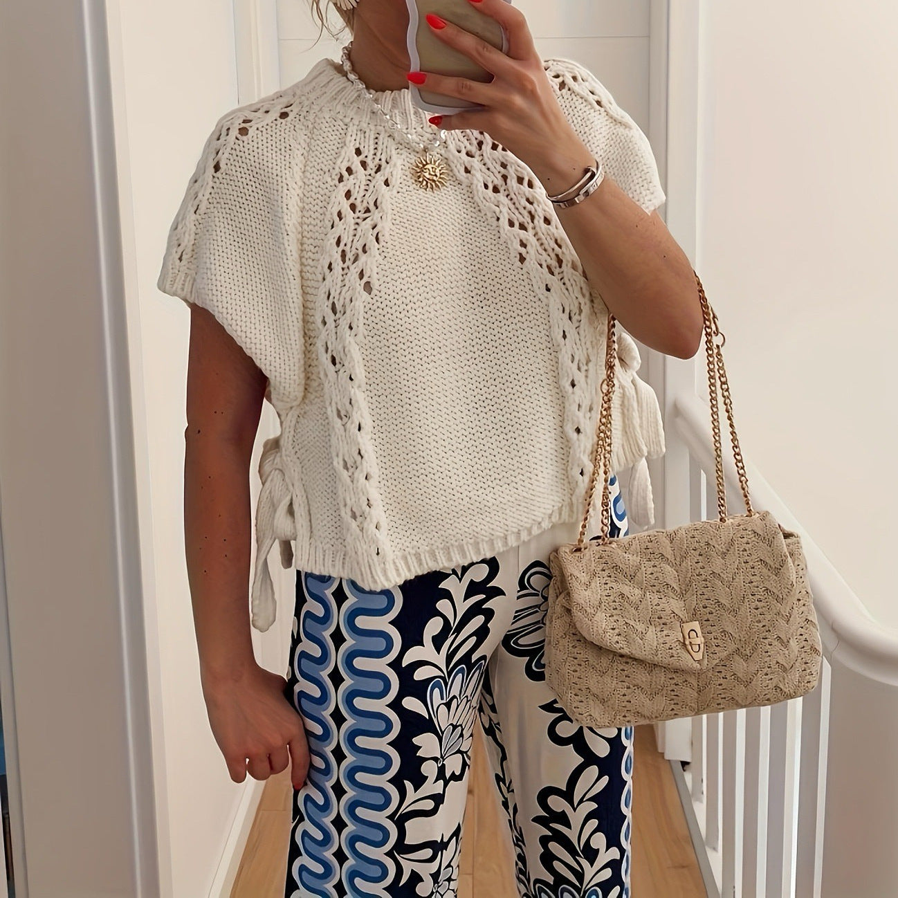 Upptäck vår eleganta, stickade topp som är perfekt för den modemedvetna kvinnan. Denna topp kombinerar komfort och stil med en modern design som passar utmärkt för olika tillfällen.