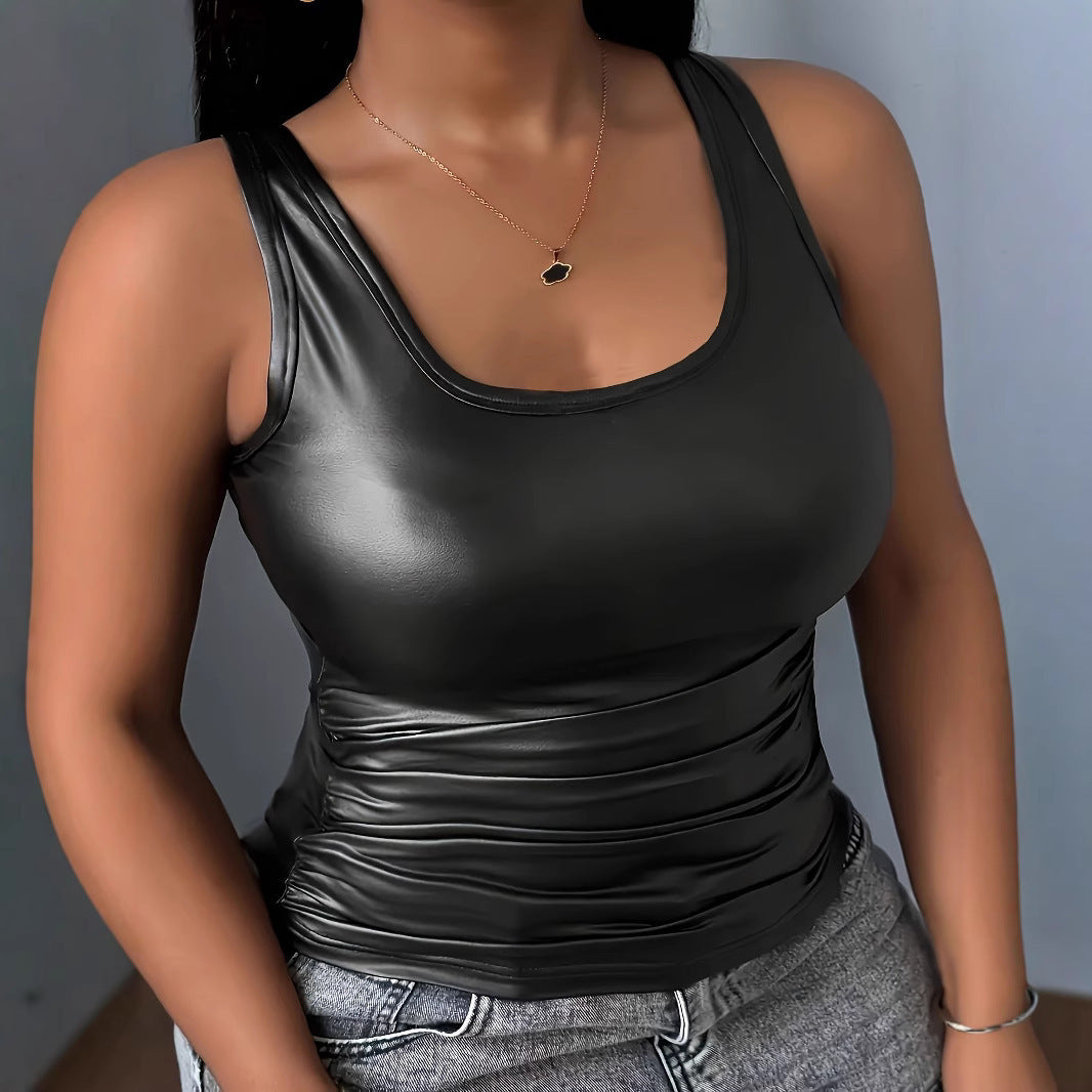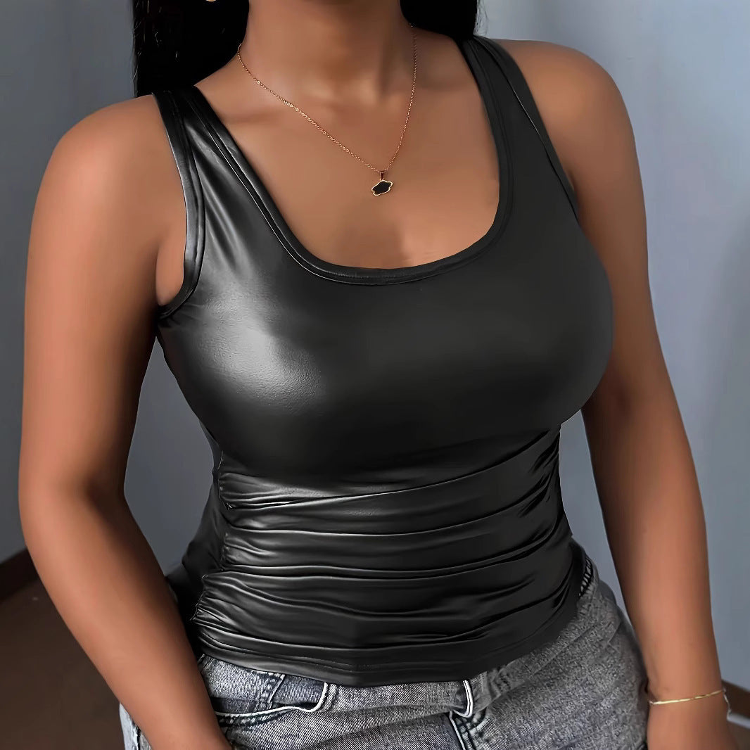 Upptäck vår damtanktop som särskilt utmärker sig med sitt glänsande material. Denna topp kombinerar modernt design med hög funktionalitet och är därmed det ideala valet för stilmedvetna kvinnor.
