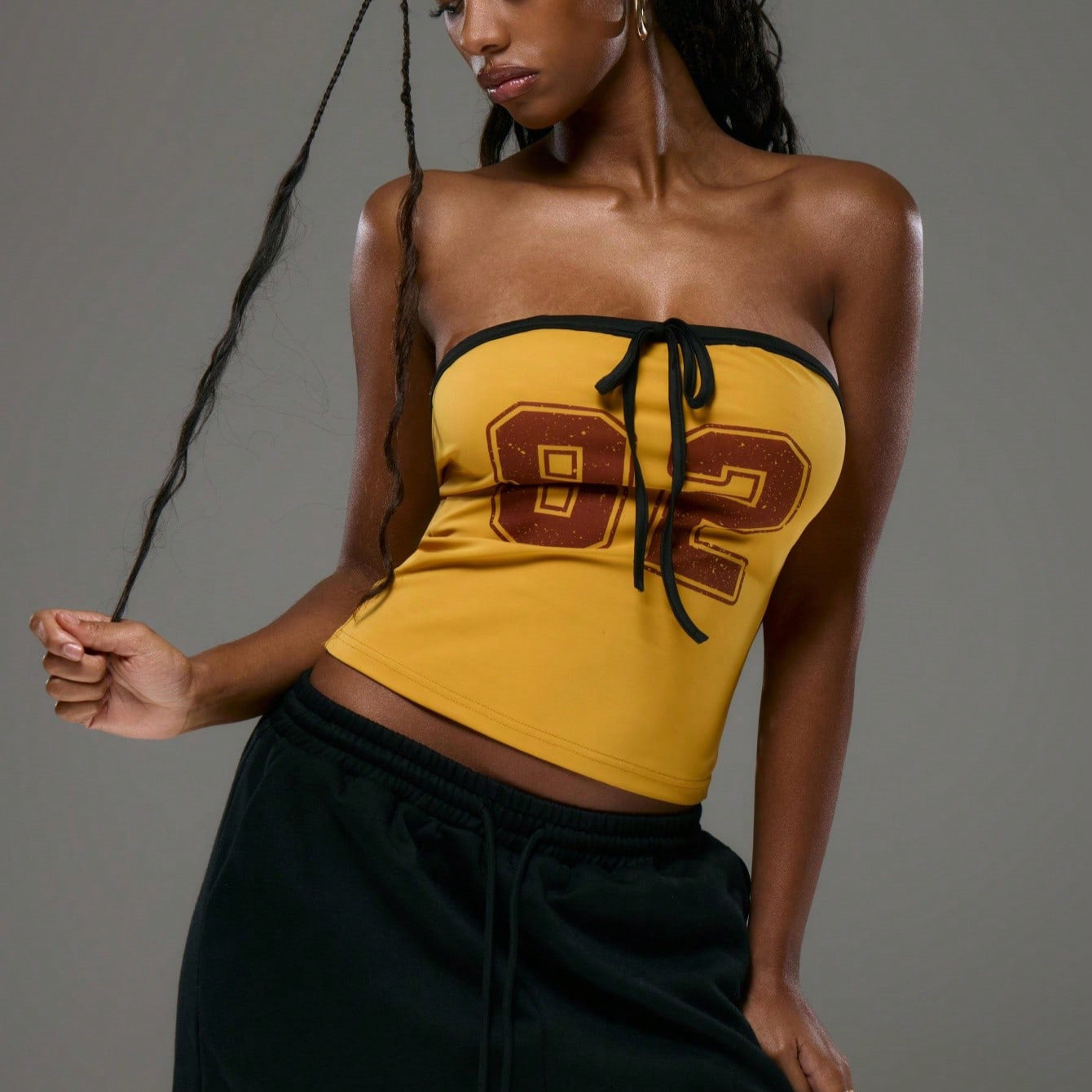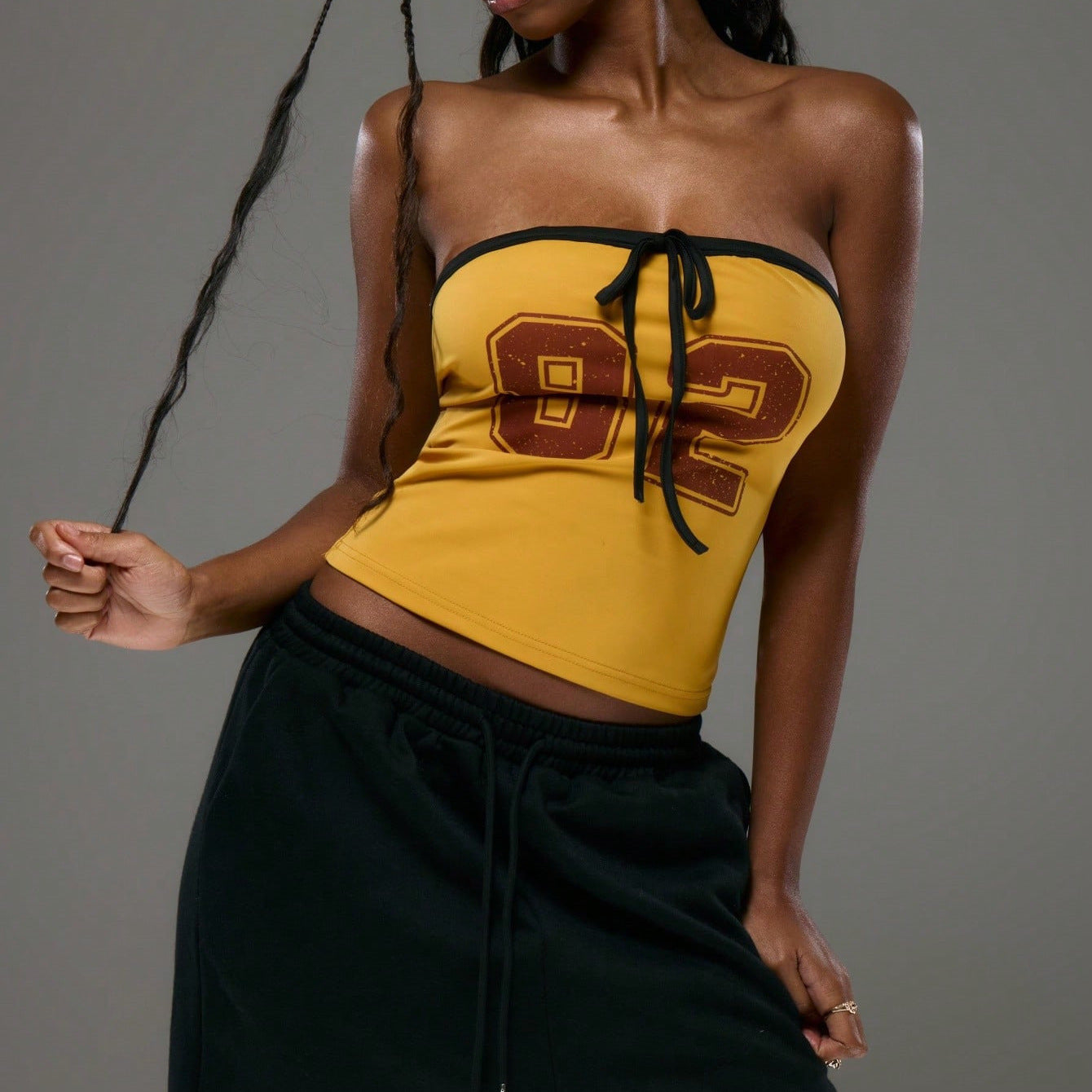 Upptäck vår damtopp med utan axelremmar och dekorativ dragsko från Eva Jonsson, som är speciellt designad för mode medvetna kvinnor. Denna topp förenar komfort och stil och är idealisk för avslappnade dagar eller utflykter med vänner.