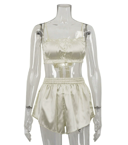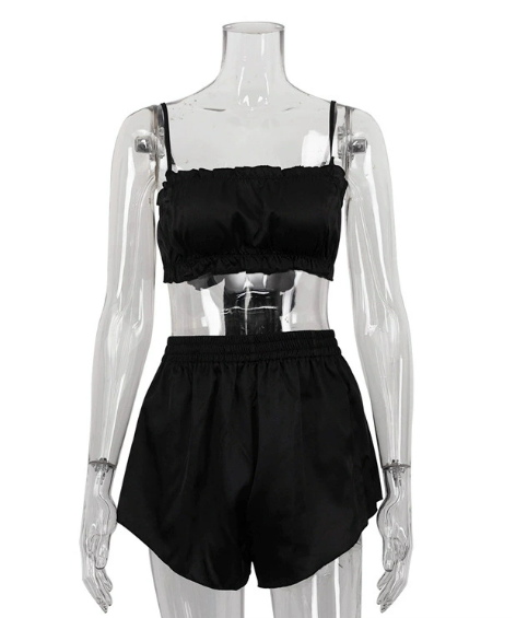 Ge dig själv en stund av lyx och komfort med vårt dam pyjamas-set med rynkat överdel och avslappnade shorts. Denna idealiska ensemble erbjuder avkopplande nätter och stiliga morgontimmar.