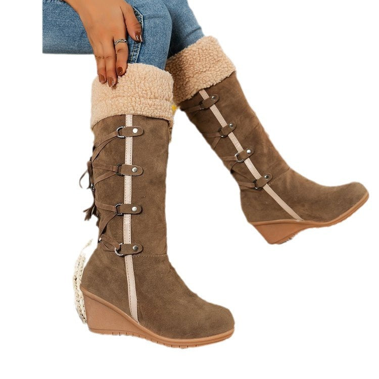 Damer wedge-stövlar med foder och mode snörningsdesign Eva Jonsson-Eva Jonsson