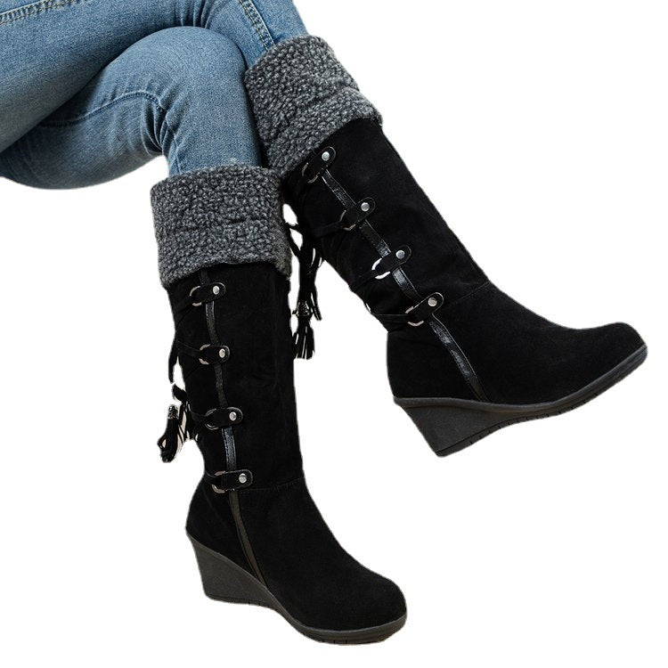 Damer wedge-stövlar med foder och mode snörningsdesign Eva Jonsson