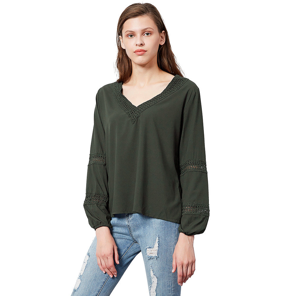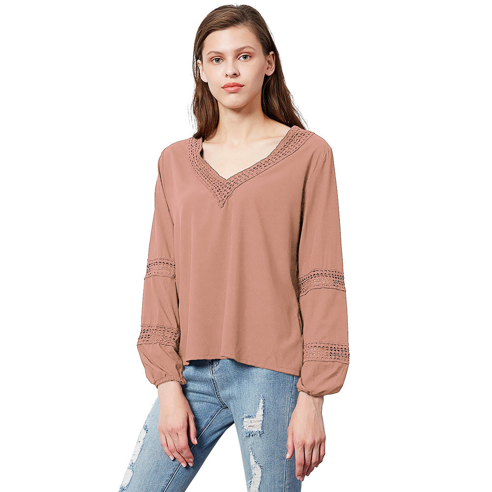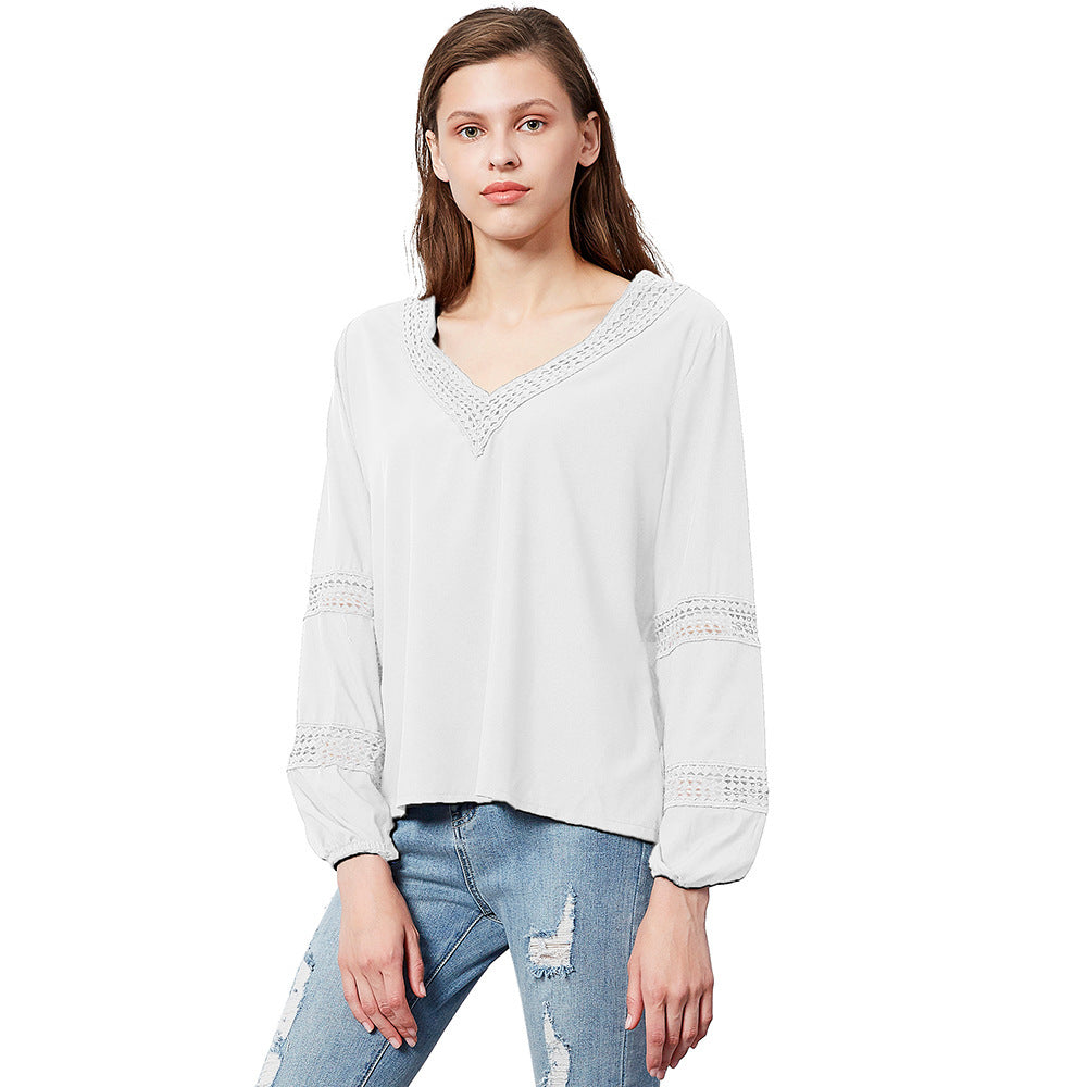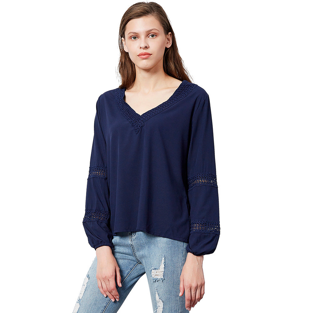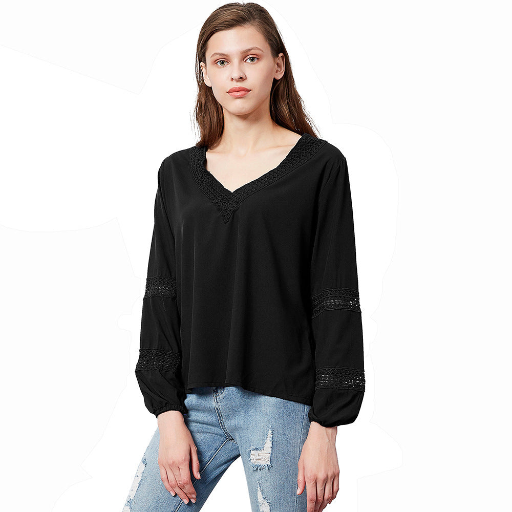 De långa ärmarna med elastiska manschetter ger en bekväm passform och en samtida look. Den fina spetsdetaljen vid ärmarna och halsringningen ger blusen en charmig touch och gör den till ett riktigt klädesplagg i din garderob.