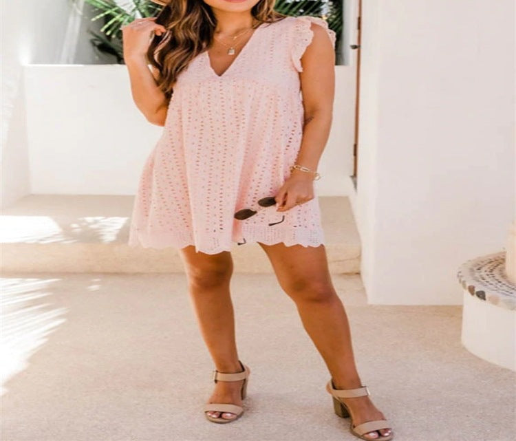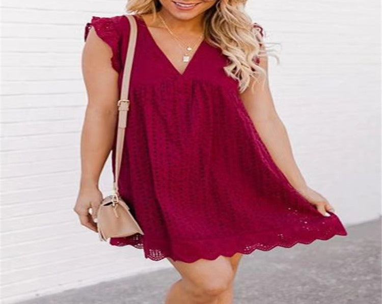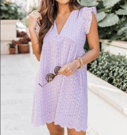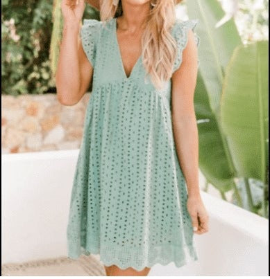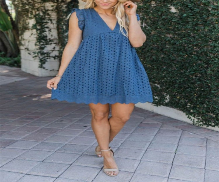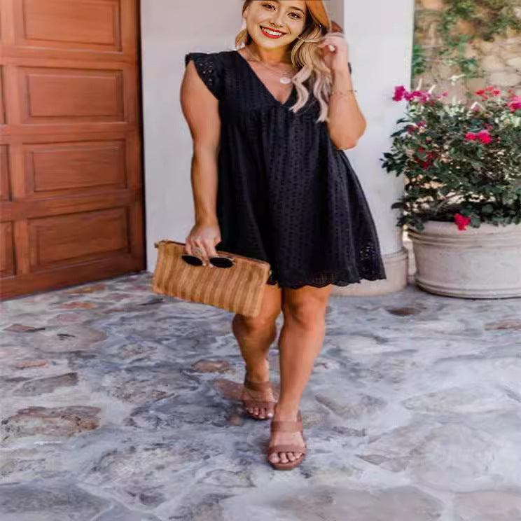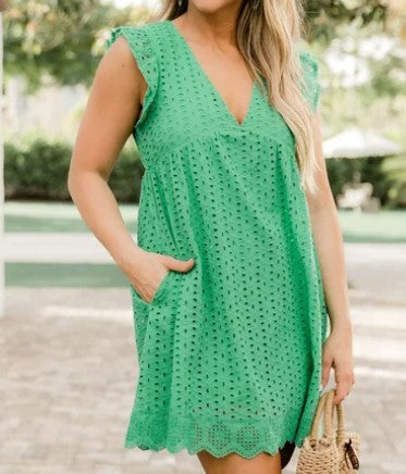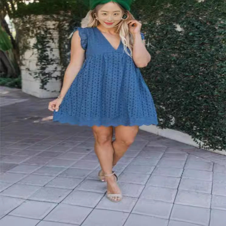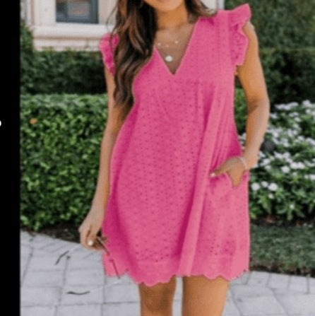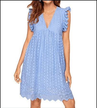 • Design: Klänningen har en V-halsringning och charmiga volanger på ärmarna som ger en feminin silhuett.