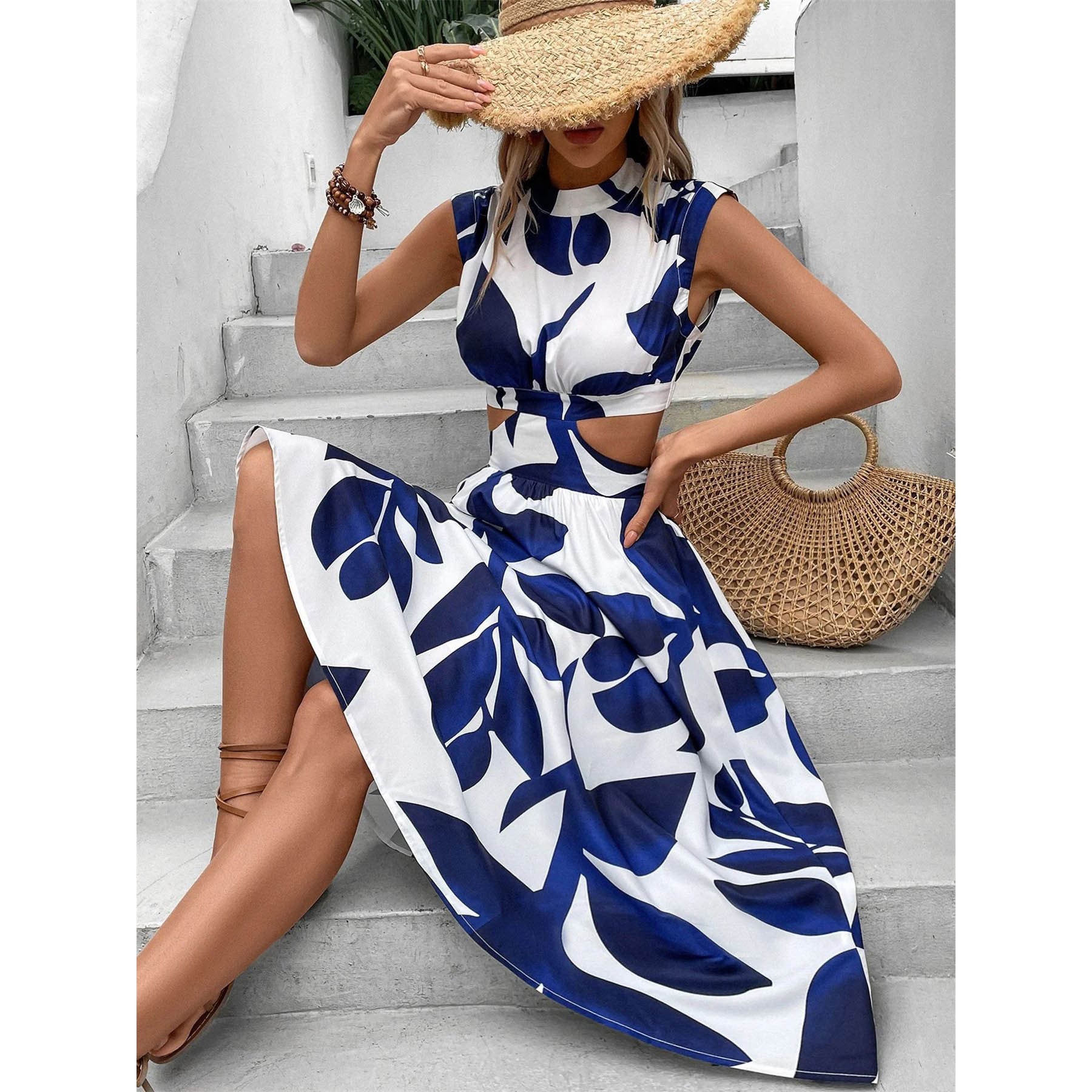 Upptäck vår stiliga Maxiklänning med bladdesign och cut-out-detaljer, idealisk för varma sommardagar eller festliga tillfällen. Denna eleganta klänning förenar modebetonade detaljer med hög bärkomfort.