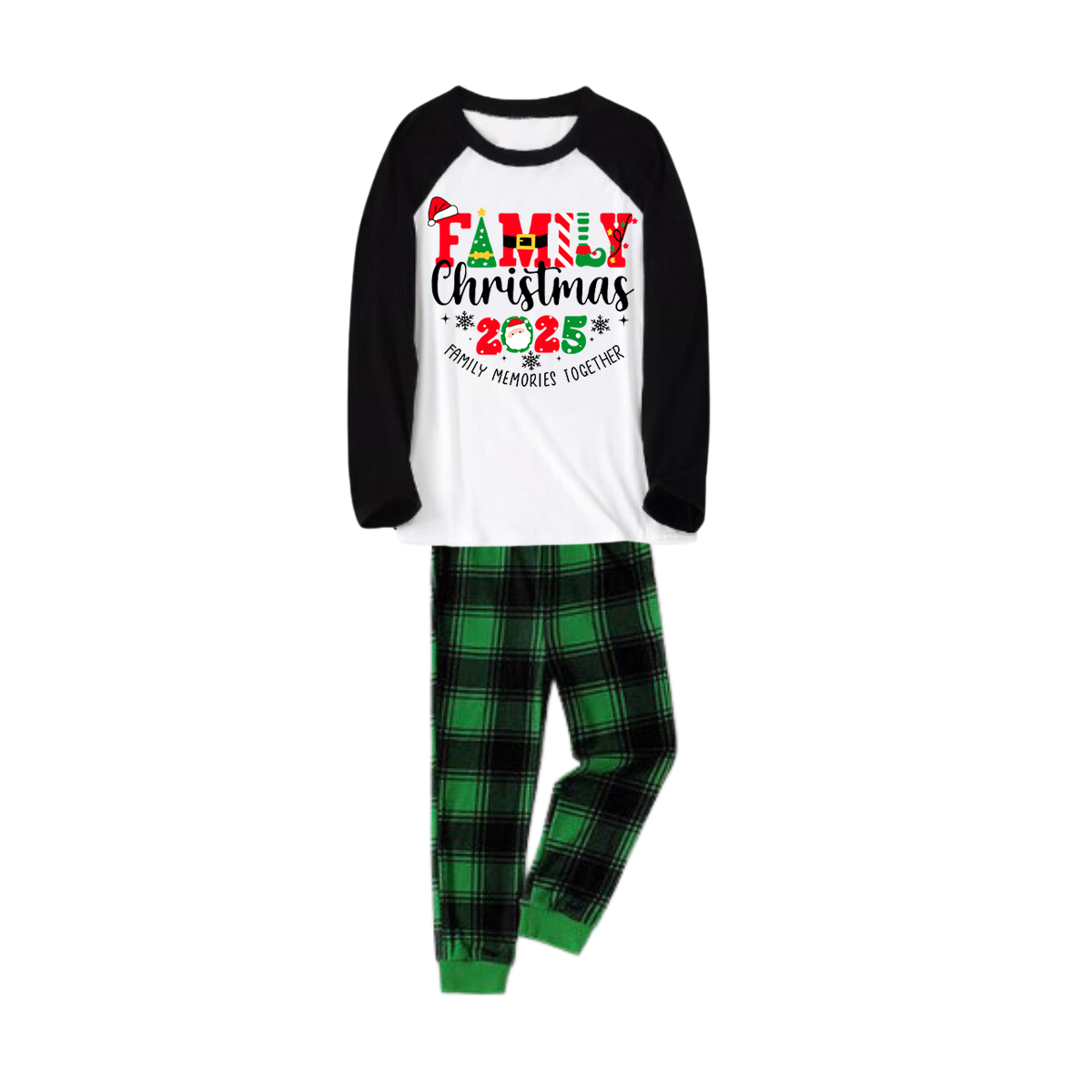Eva Jonsson | Familjejul 2025 Skapa Minnen Tillsammans Söt Juldekoration Tryckt Grön och Svart Rutigt Julfamiljepyjamas