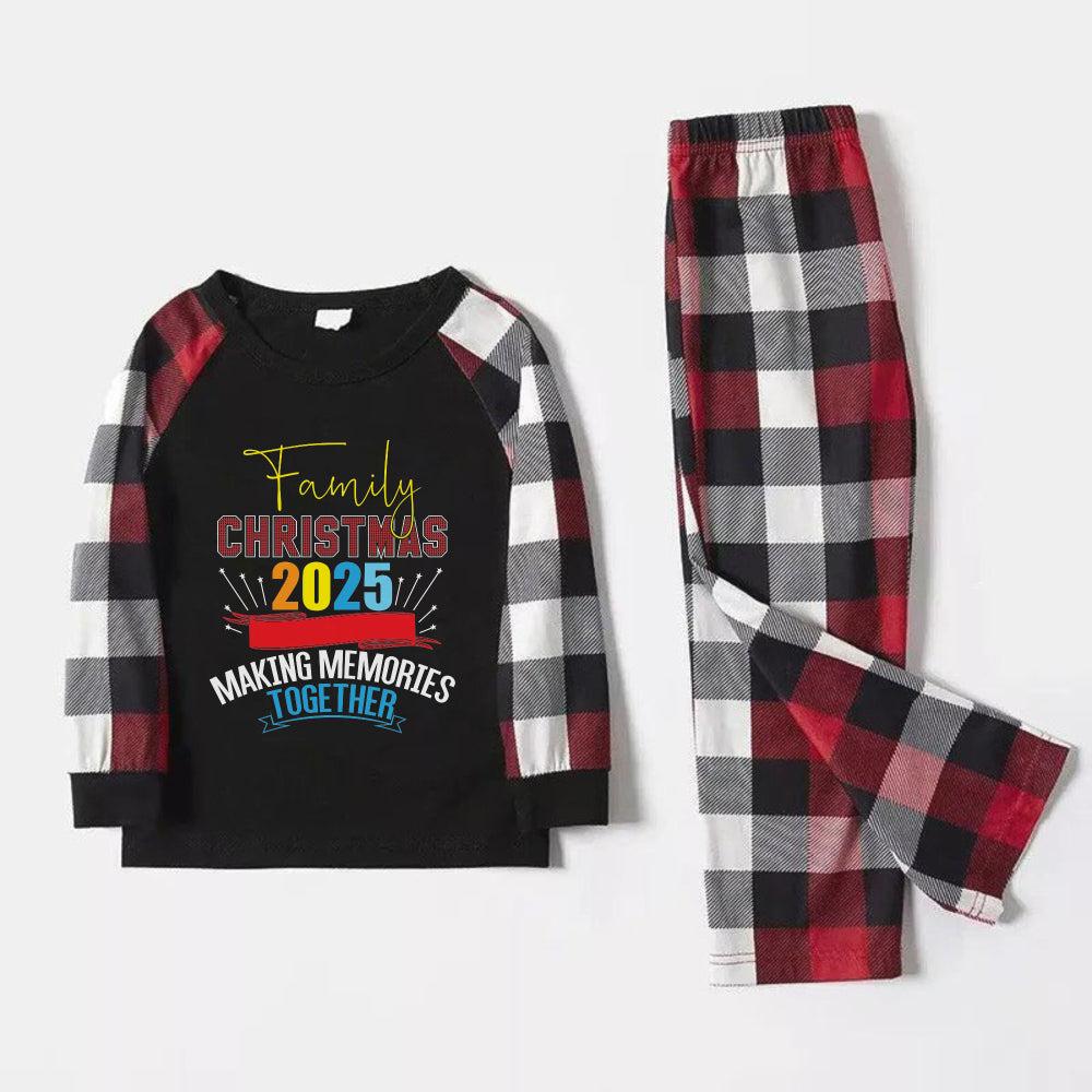 Eva Jonsson | Julfamilj Matchande Pyjamas - Röda och Grå Rutiga Pjs med Färgglad Tryck Familjens Jul 2025 Skapa Minnen Tillsammans