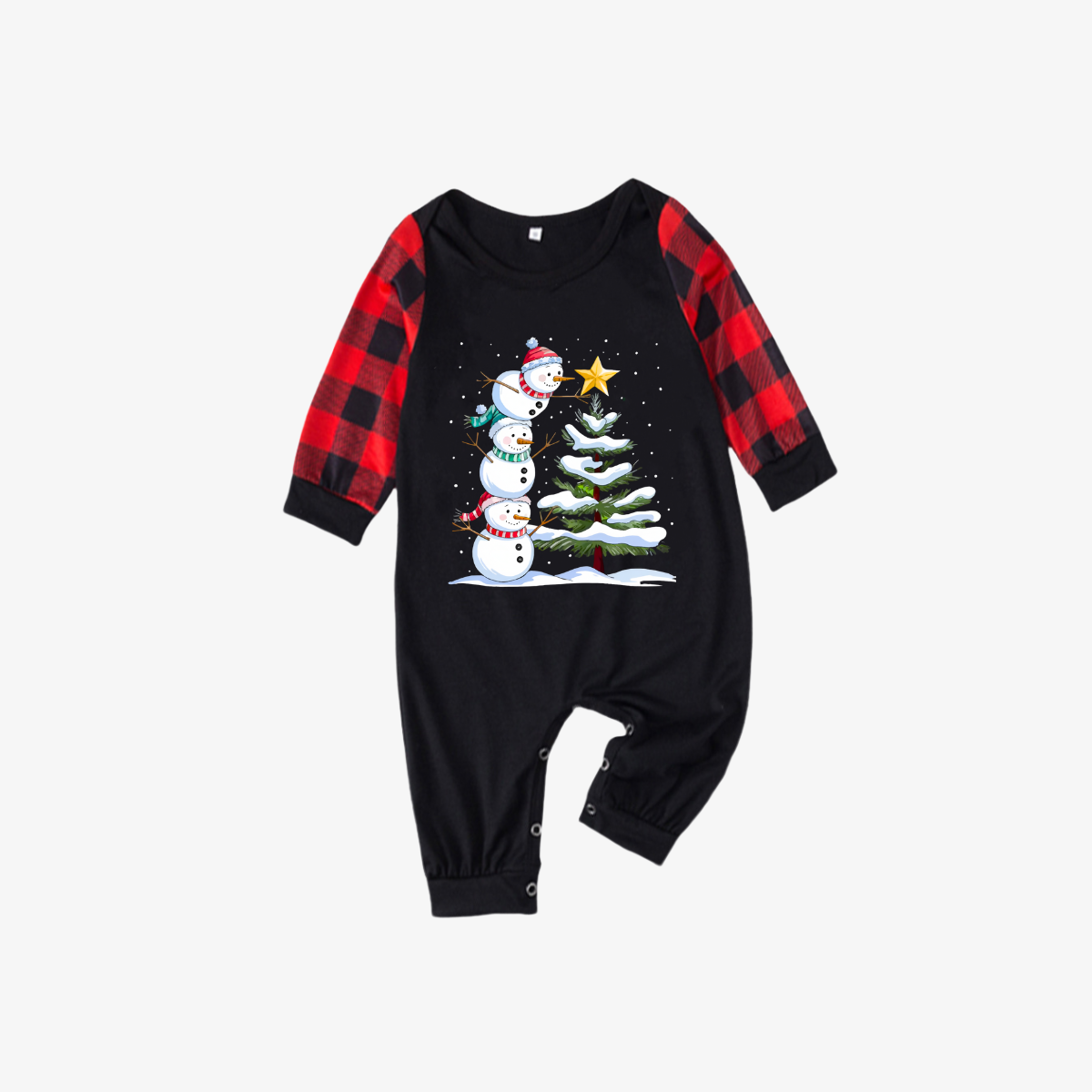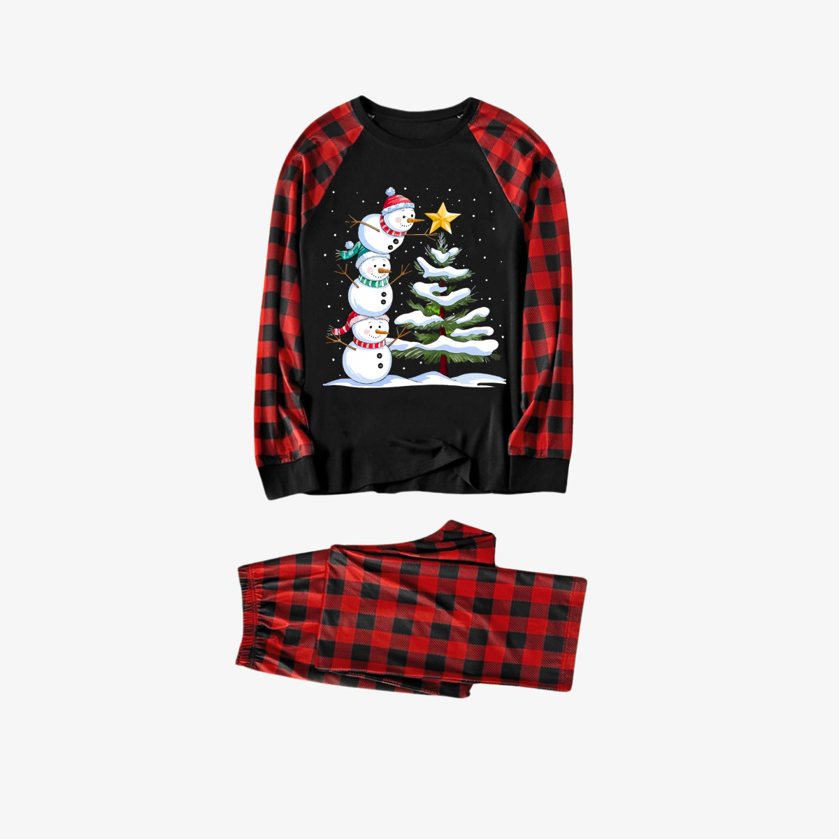 Eva Jonsson | Röda och Svarta Rutiga Julpyjamas-Set med Snögubbe- och Julgranstryck-Eva Jonsson