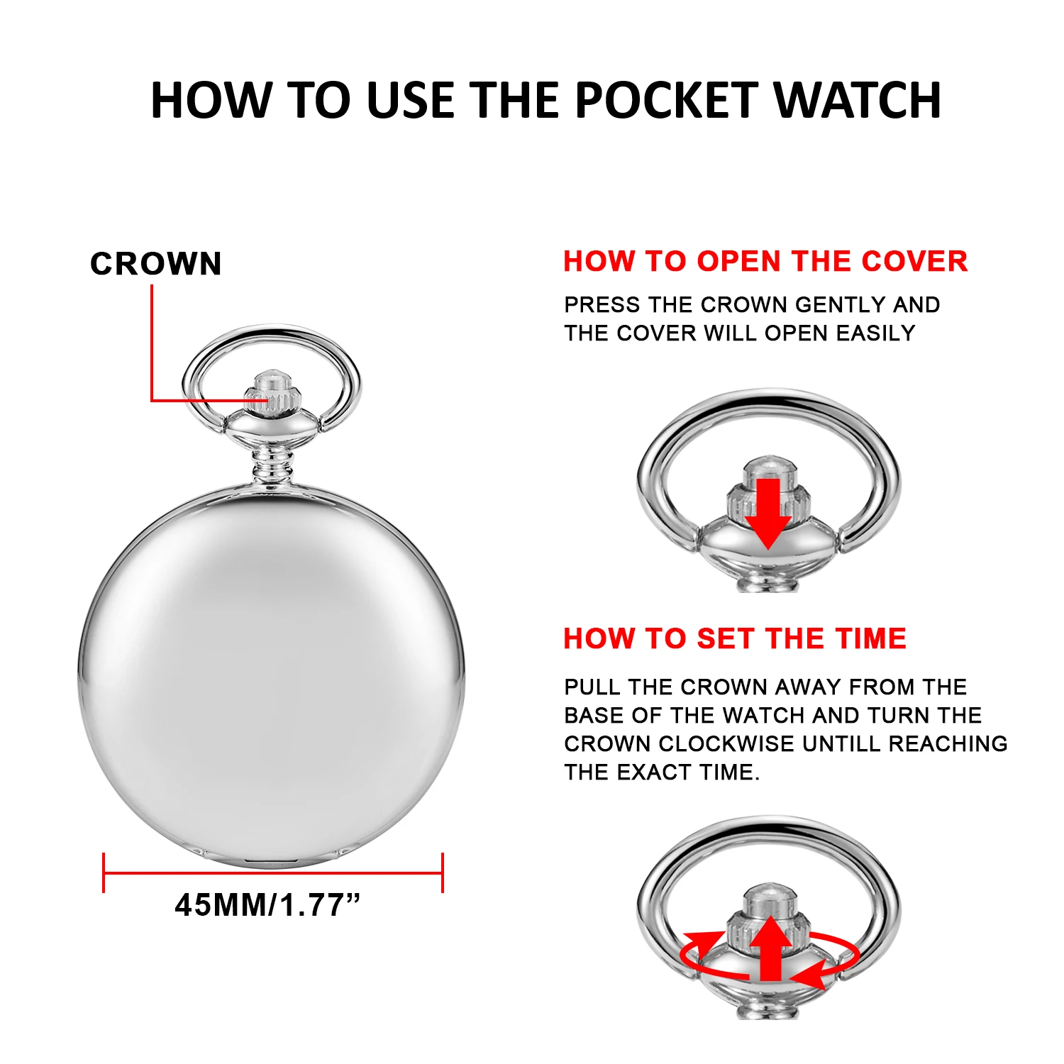 Klassisk Silver Fickur med Kedja – Retro Kvartsrörelse för Män och Kvinnor