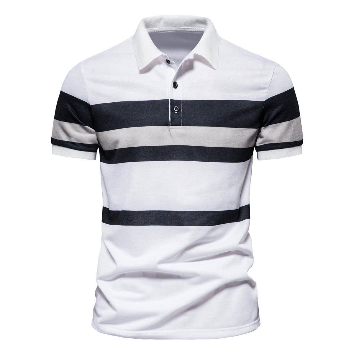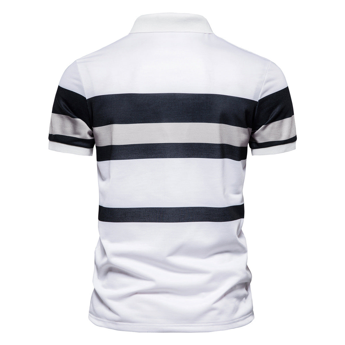 Upptäck vår herrpoloshirt med klassiska ränder, som är både stilfull och funktionell. Tillverkad av högkvalitativ, andningsbar bomull ger den maximal bärkomfort, oavsett om du är på kontoret eller på fritiden.