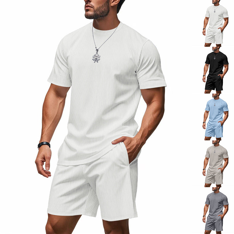 Upptäck det stiliga fritidssetet för herrar i andningsbart material från Eva Jonsson, den perfekta outfiten för avslappnade dagar och aktiv fritid. Detta set består av en högkvalitativ kortärmad tröja och bekväma shorts som tillsammans ger en harmonisk helhet.