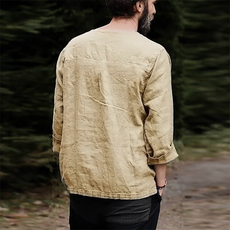 Material: Tillverkad av högkvalitativ linne, erbjuder denna skjorta en andningsbar och bekväm passform.