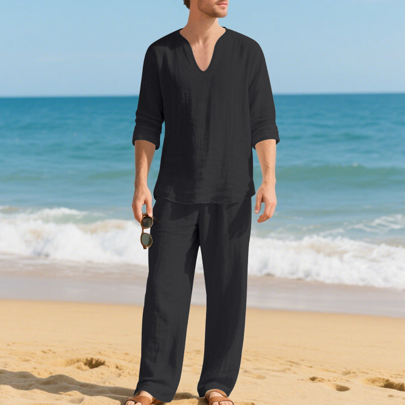 Unna dig den ultimata komforten med detta stiliga herrstrand-outfit från Eva Jonsson och gör nästa sommarsemester oförglömlig!