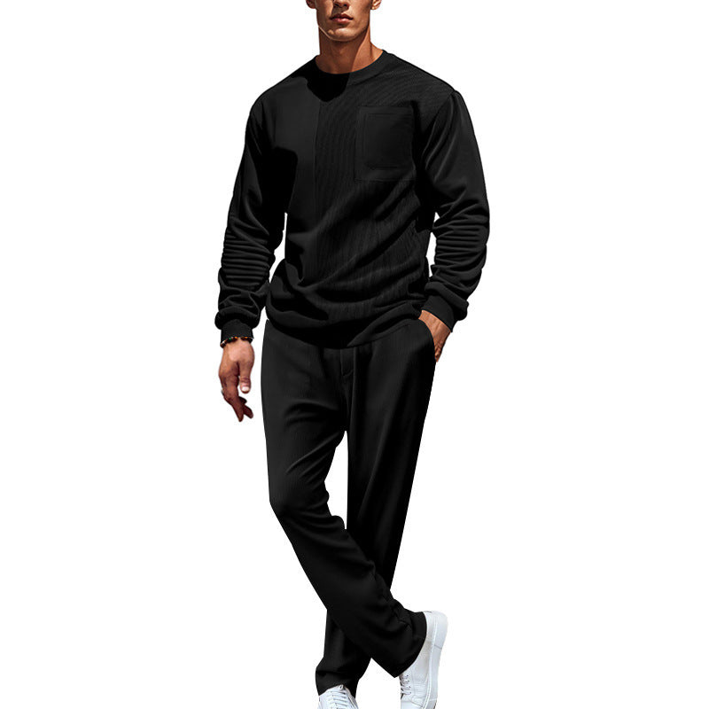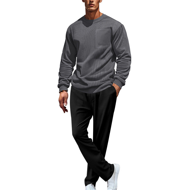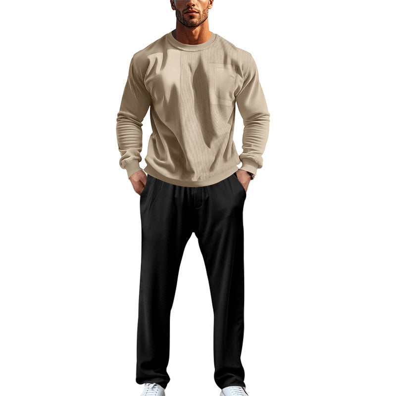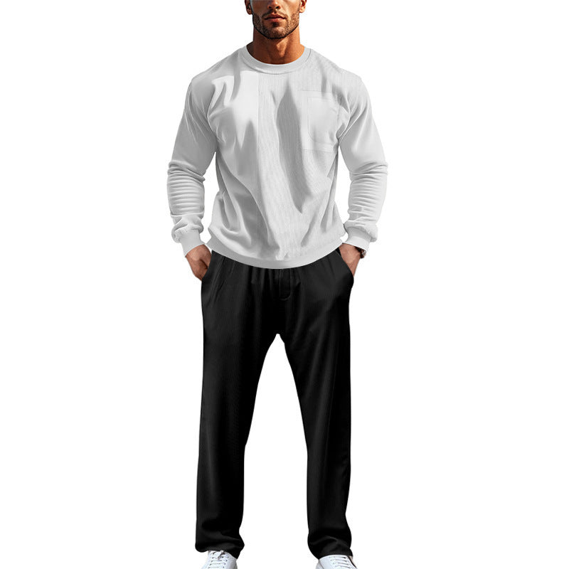 Upptäck den perfekta följeslagaren för avkopplande dagar: vår bekväma och eleganta fritidsdräkt för herrar. Den kännetecknas av en genomtänkt kombination av komfort och stil, idealisk för fritid, sport eller mysiga kvällar hemma.