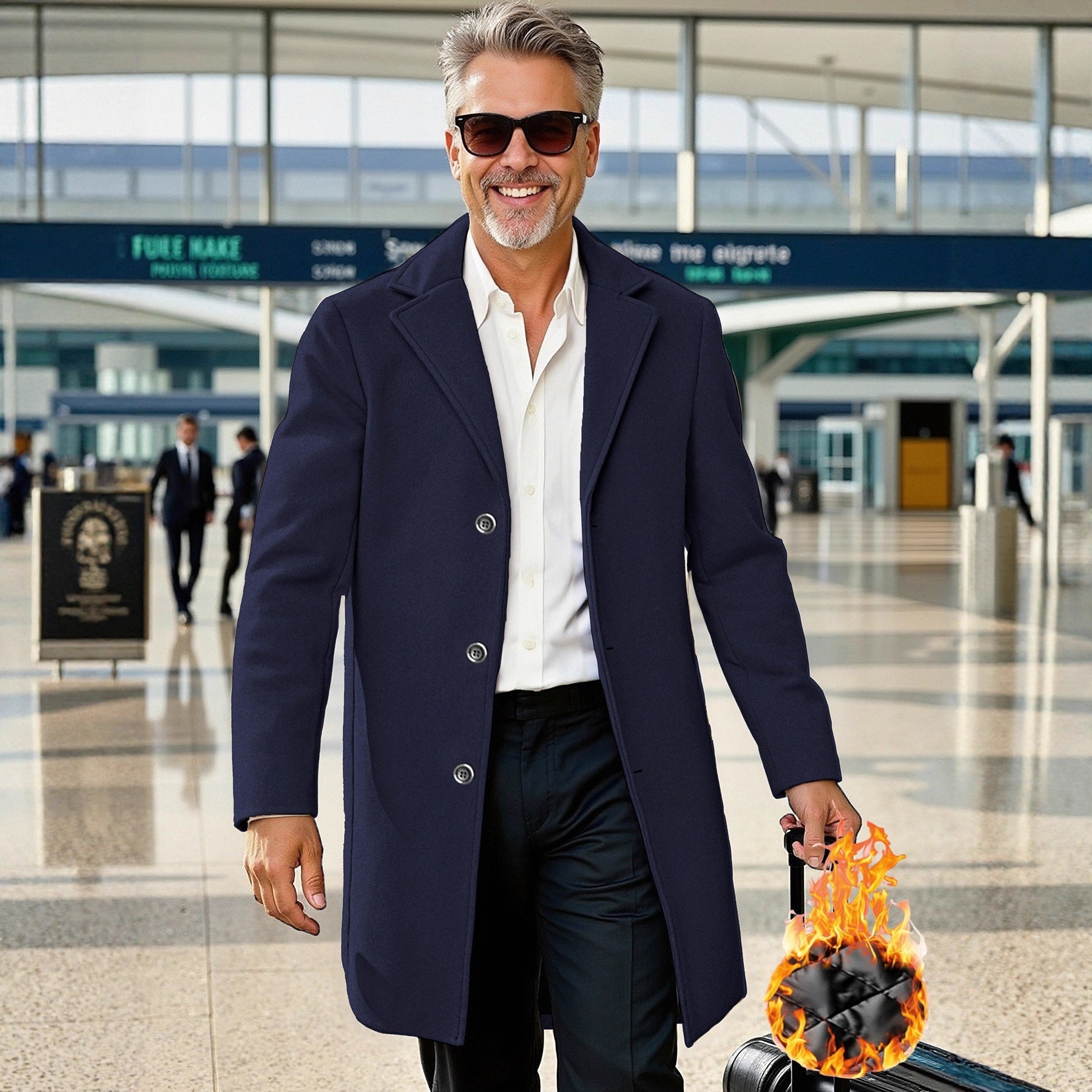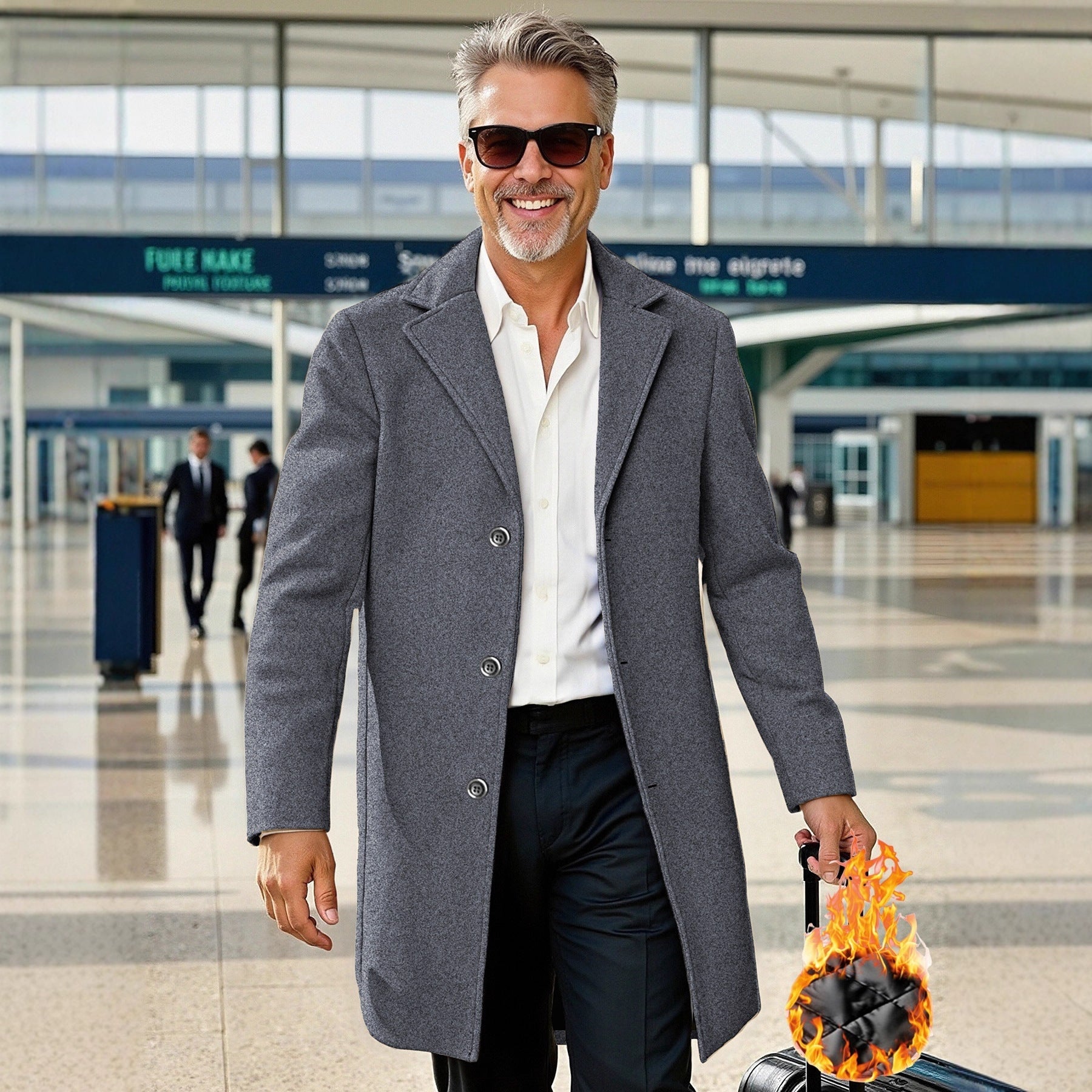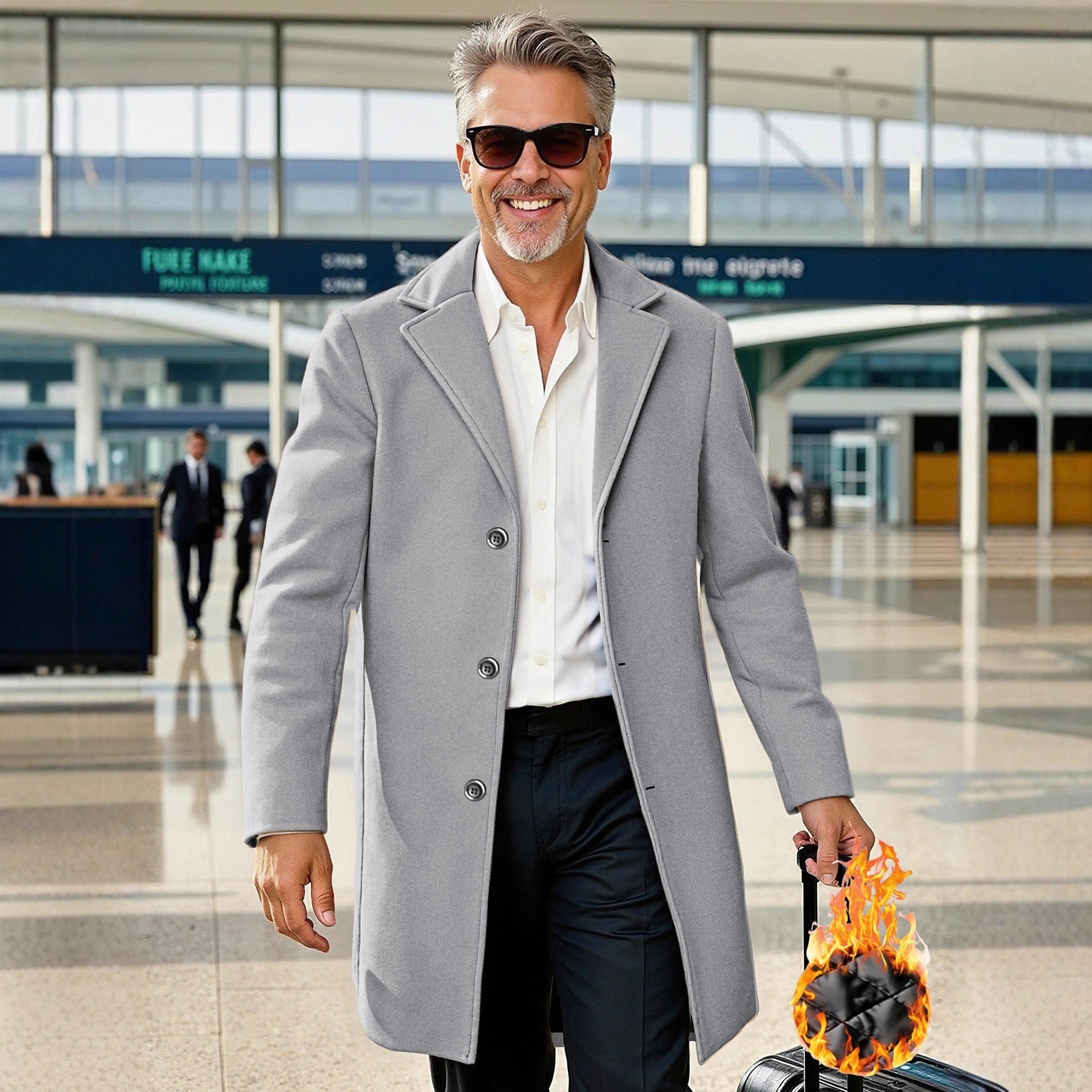 Upptäck den perfekta följeslagaren för dina affärsuppträdanden med vår eleganta herr-dubbelknäppta kappa. Tillverkad av högkvalitativa material, förenar denna kappa raffinerad elegans med optimal bärkomfort.