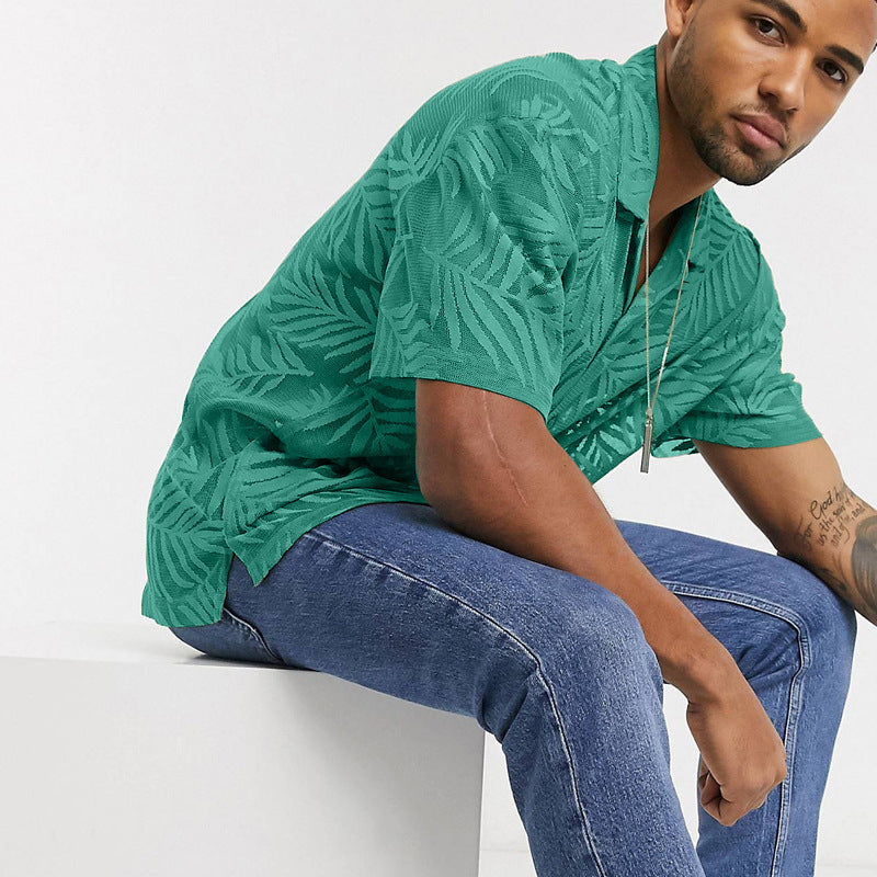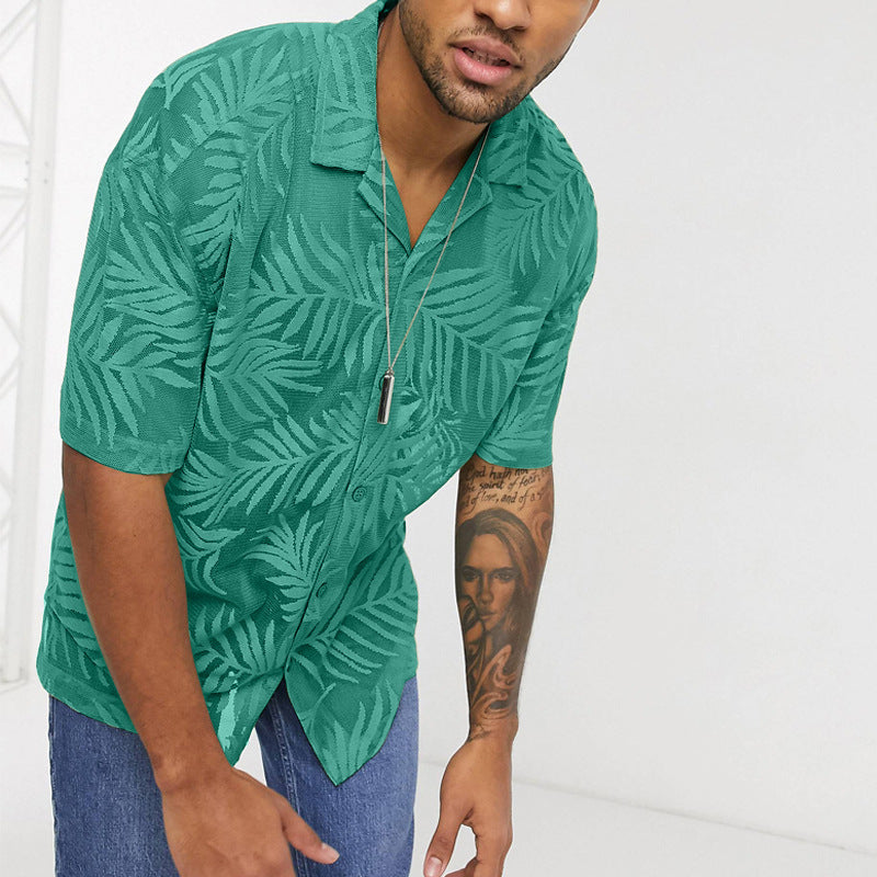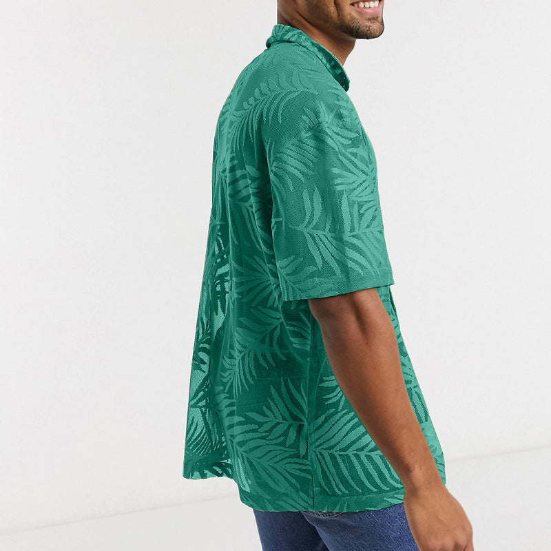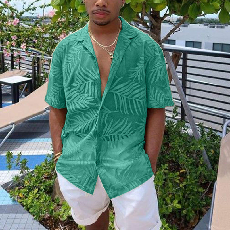 Upptäck vår herrkortärmade skjorta med tropiskt bladdesign, den perfekta följeslagaren för dina sommaroutfit. Denna trendiga skjorta förenar stil och komfort och är idealisk för fritidsaktiviteter eller avslappnade tillfällen.