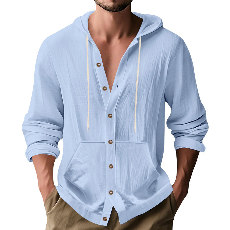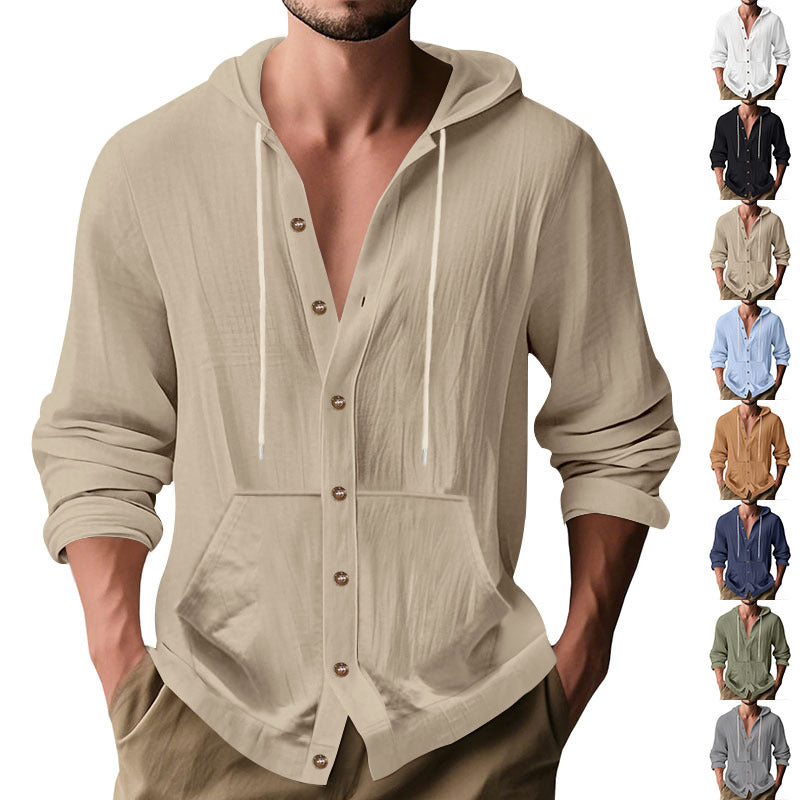 Upptäck vår herr casual hoodie med knapplist och praktiska fickor, designad för den moderna och stilmedvetna mannen. Denna hoodie kombinerar funktionalitet och stil, perfekt för fritidsaktiviteter och avkopplande dagar.