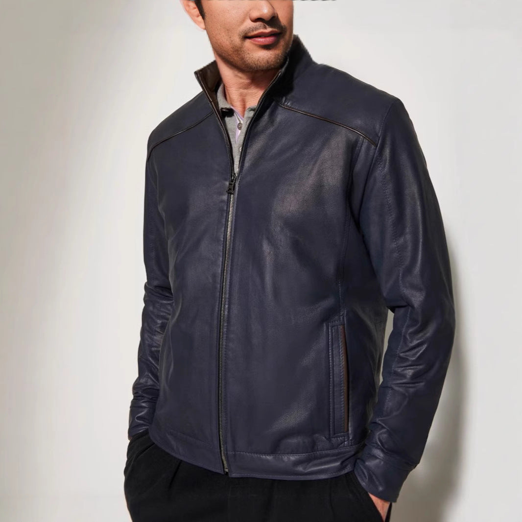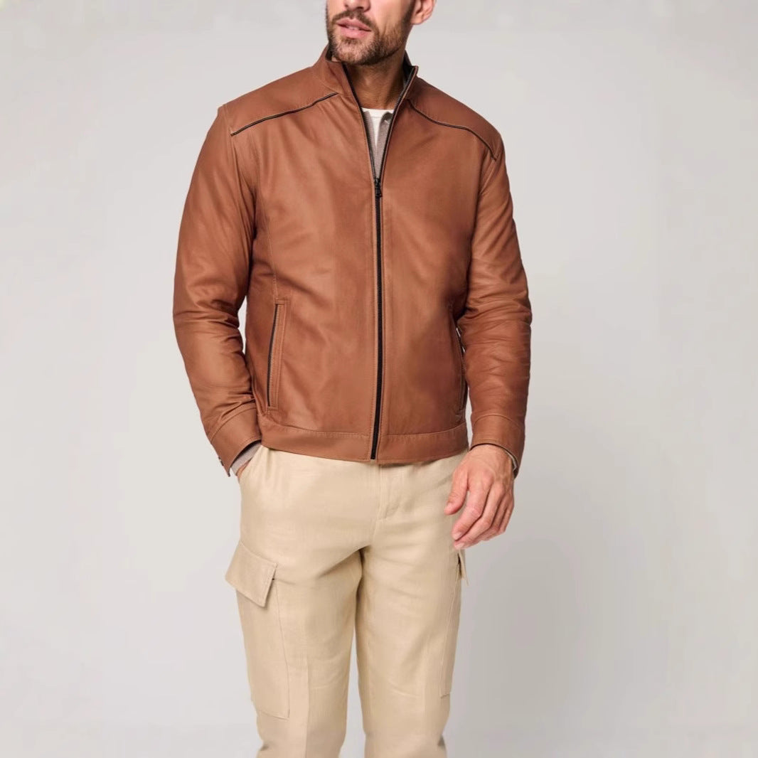 Den herrmoderna läderjackan är en oumbärlig klädesplagg för varje garderob. Kombinera den med dina favoritjeans eller en elegant byxa för en felfri look.