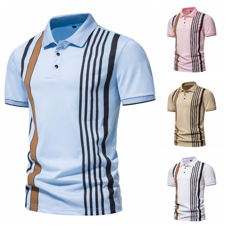 Upptäck vår herrpolotröja med moderna ränder, som förenar stil och komfort. Denna högkvalitativa polotröja är tillverkad av andasdukande bomull, vilket är idealiskt för varma dagar. Den praktiska knäppningen vid kragen och de korta ärmarna ger en avslappnad men elegant look, perfekt för alla tillfällen.