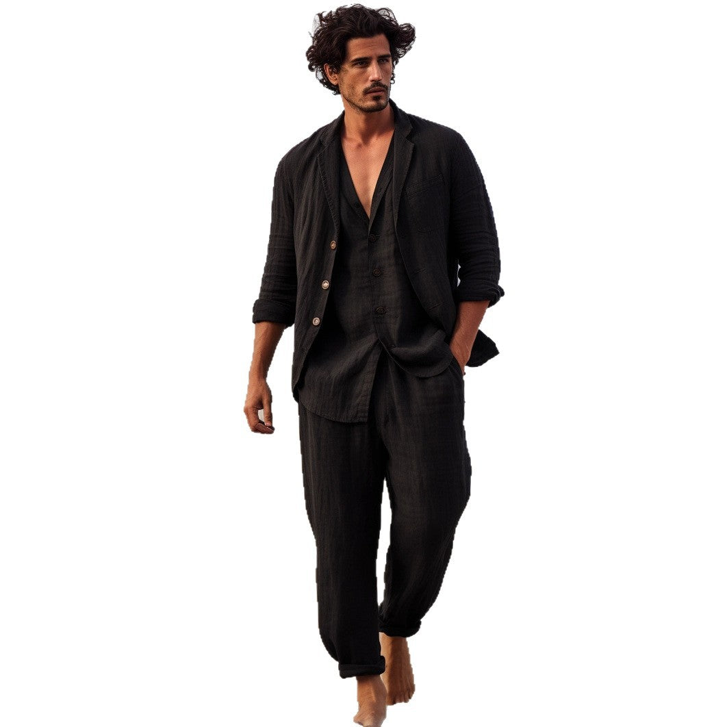 Upptäck vår herr casual linnekostym, perfekt för avkopplande dagar på stranden eller eleganta kvällsevenemang. Tillverkad av högkvalitativ, andningsbar linne, erbjuder denna kostym en behaglig bärkomfort vid varmt väder.