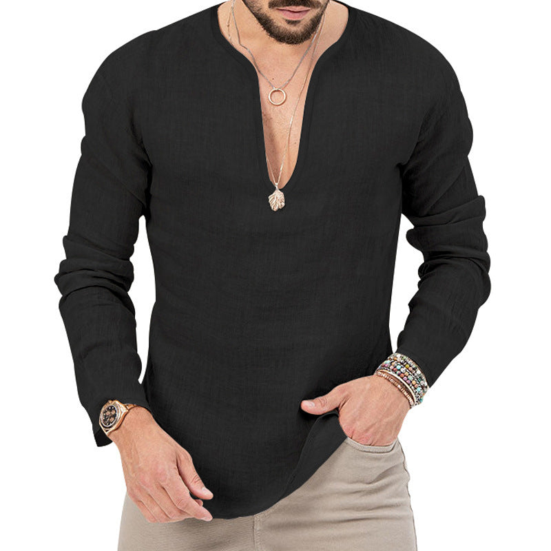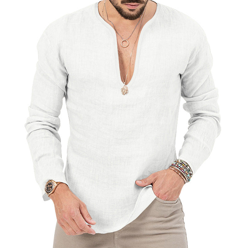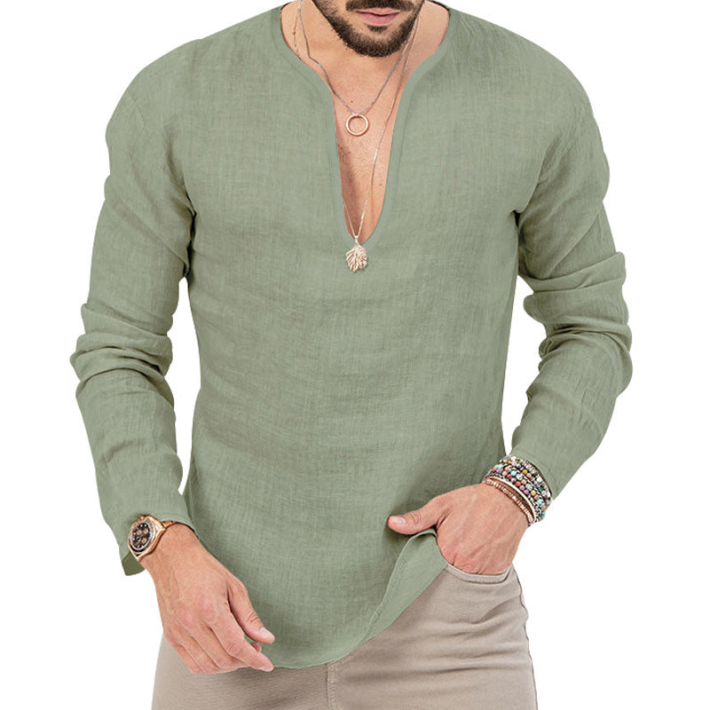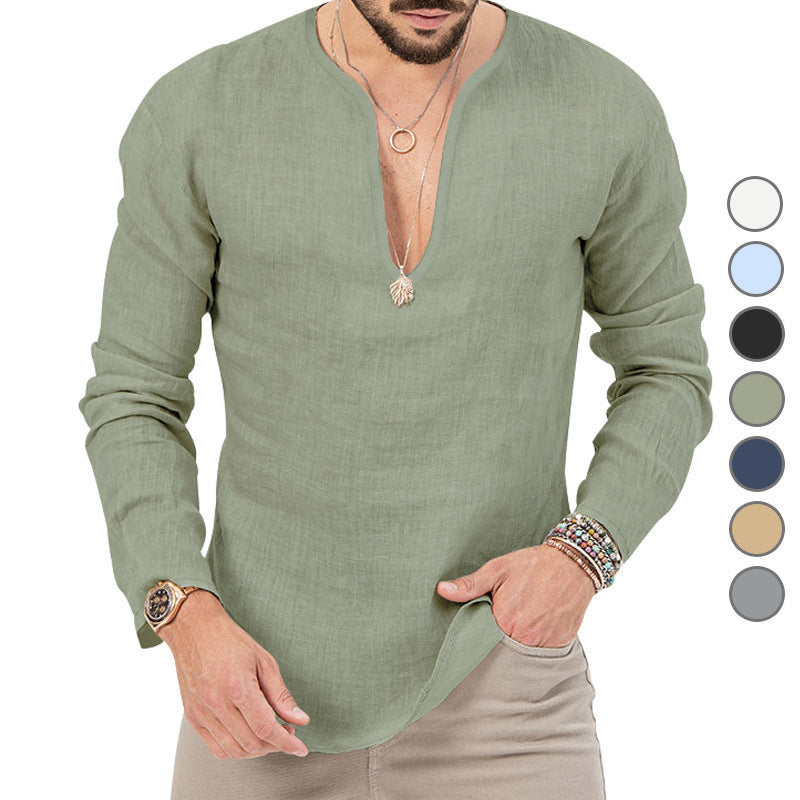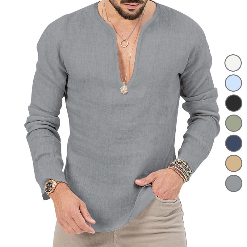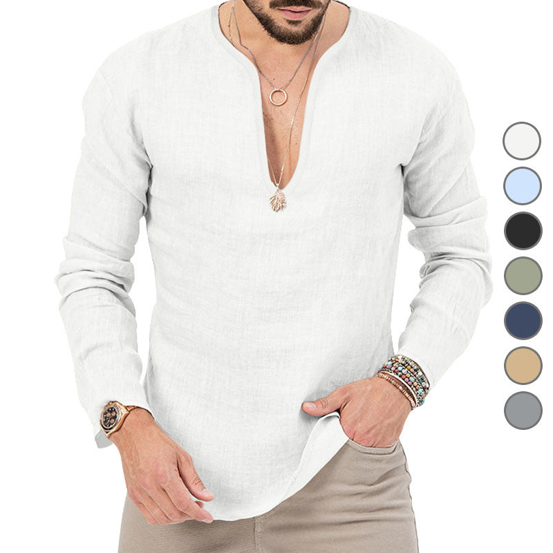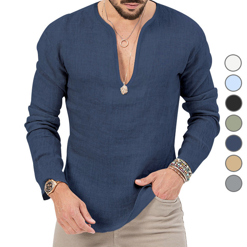 Vår herr casual linne-skjorta med djup V-hals kombinerar stiligt design med högsta bärkomfort. Ideal för moderna män som värderar kvalitet och stil.