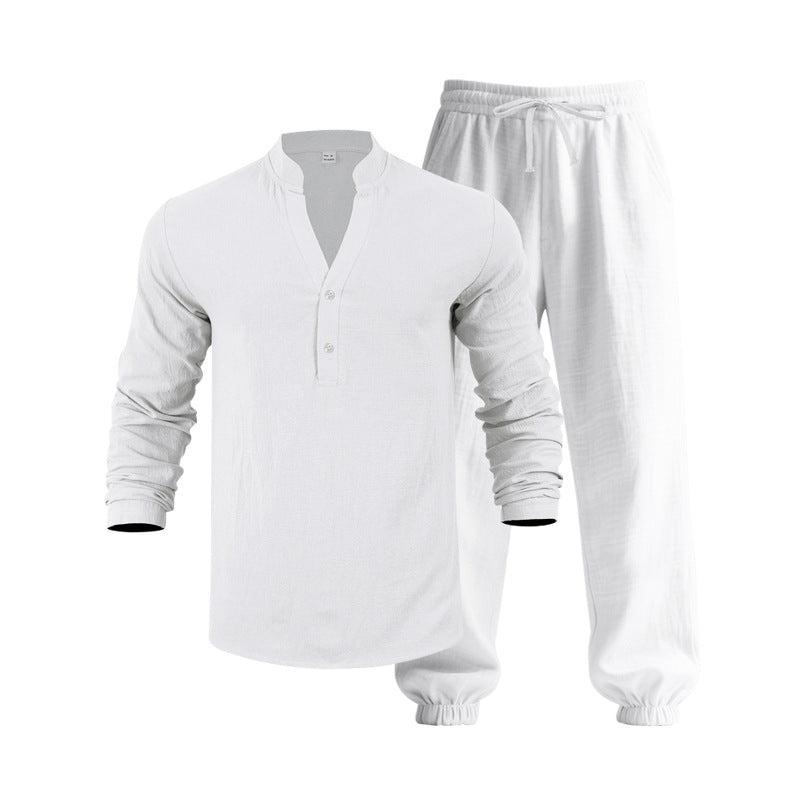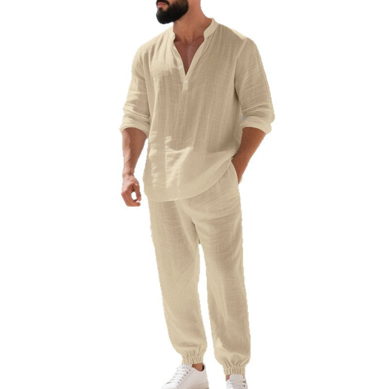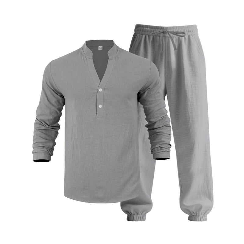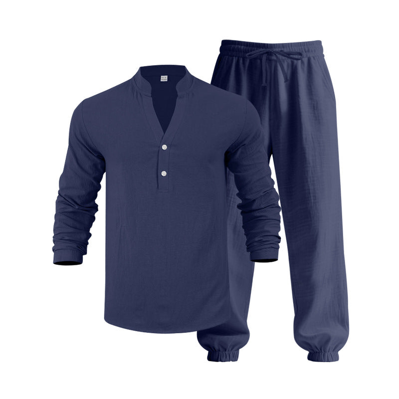 Upptäck det perfekta setet för din fritid med vår herravdelning av avslappnat långärmat plagg och avslappnade joggingsbyxor. Detta ensemble erbjuder komfort och stil, perfekt för avkopplande dagar hemma eller aktiva aktiviteter.