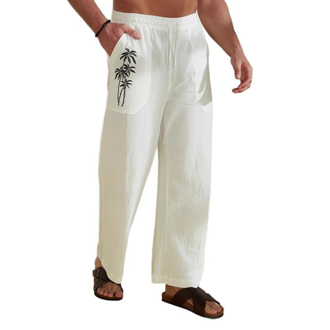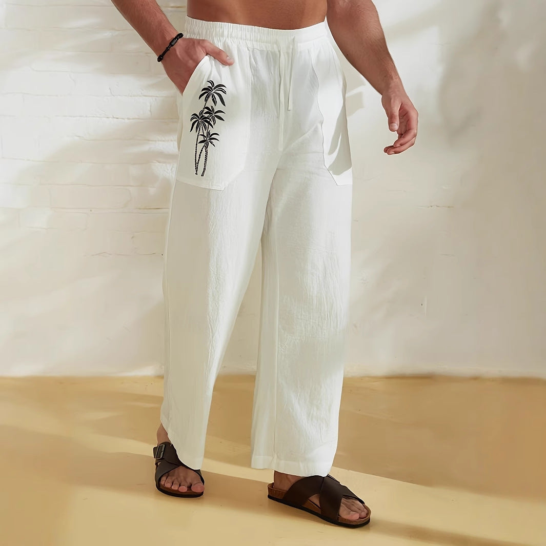 Herrens avslappnade linne-Relax-byxor med palmotivagerade fickor Eva Jonsson