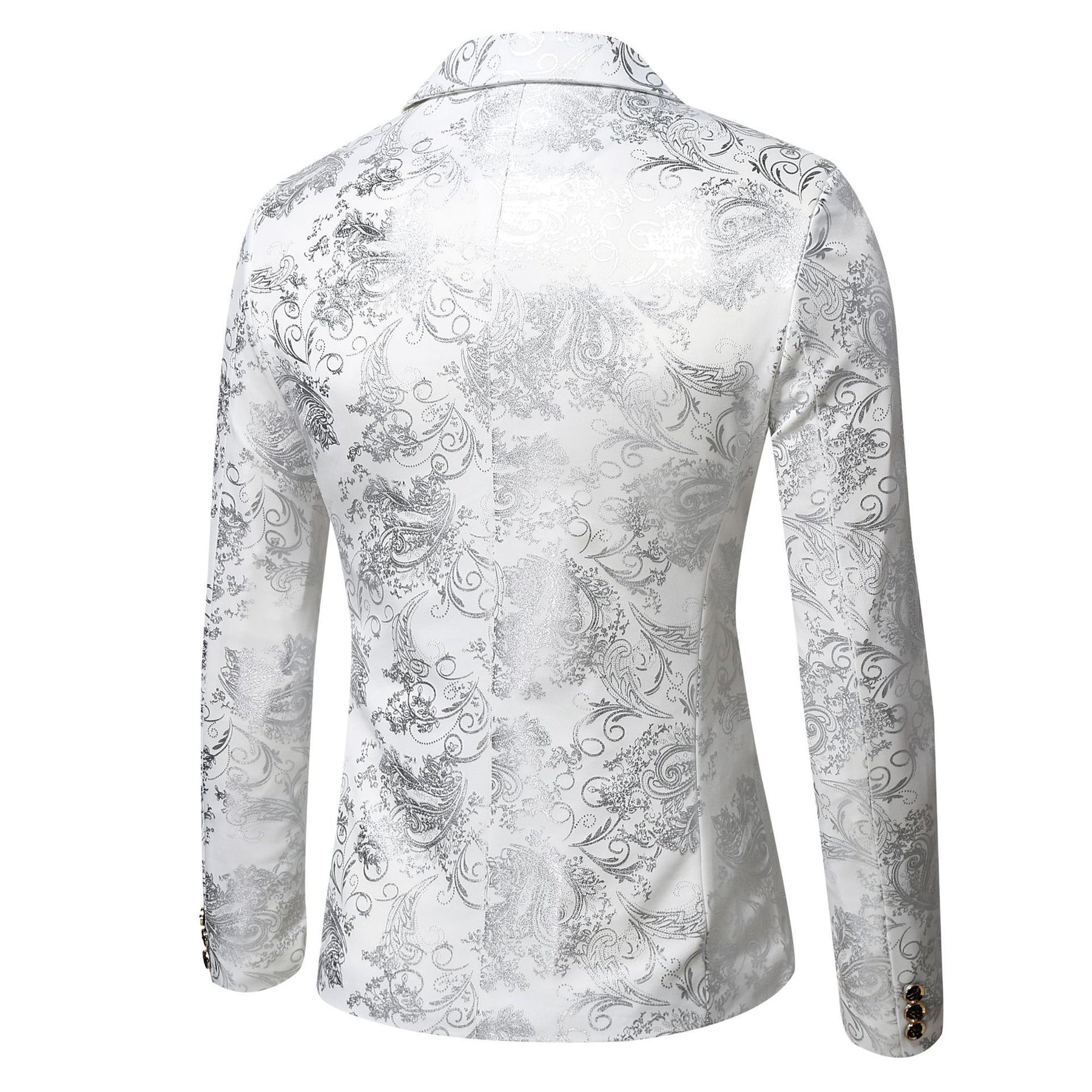 Upplev stilfull elegans med vår herr eleganta blazer med konstfullt mönster och lyxig glans. Denna bedårande blazer är den perfekta följeslagaren för festliga tillfällen och speciella evenemang.