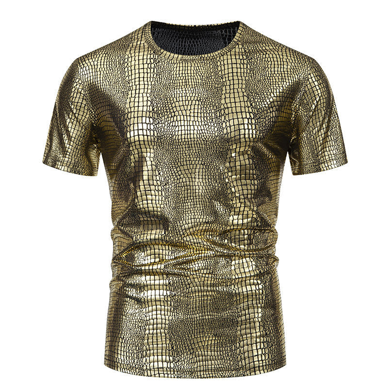 Upptäck vår herrglamorösa kortärmad tröja i skinnmönster från Eva Jonsson, den perfekta kombinationen av stil och komfort. Detta unika plagg utmärker sig med sitt iögonfallande, släta material som är designat i en glimrande guldton och prytt med en modern skinnmönsterdesign.