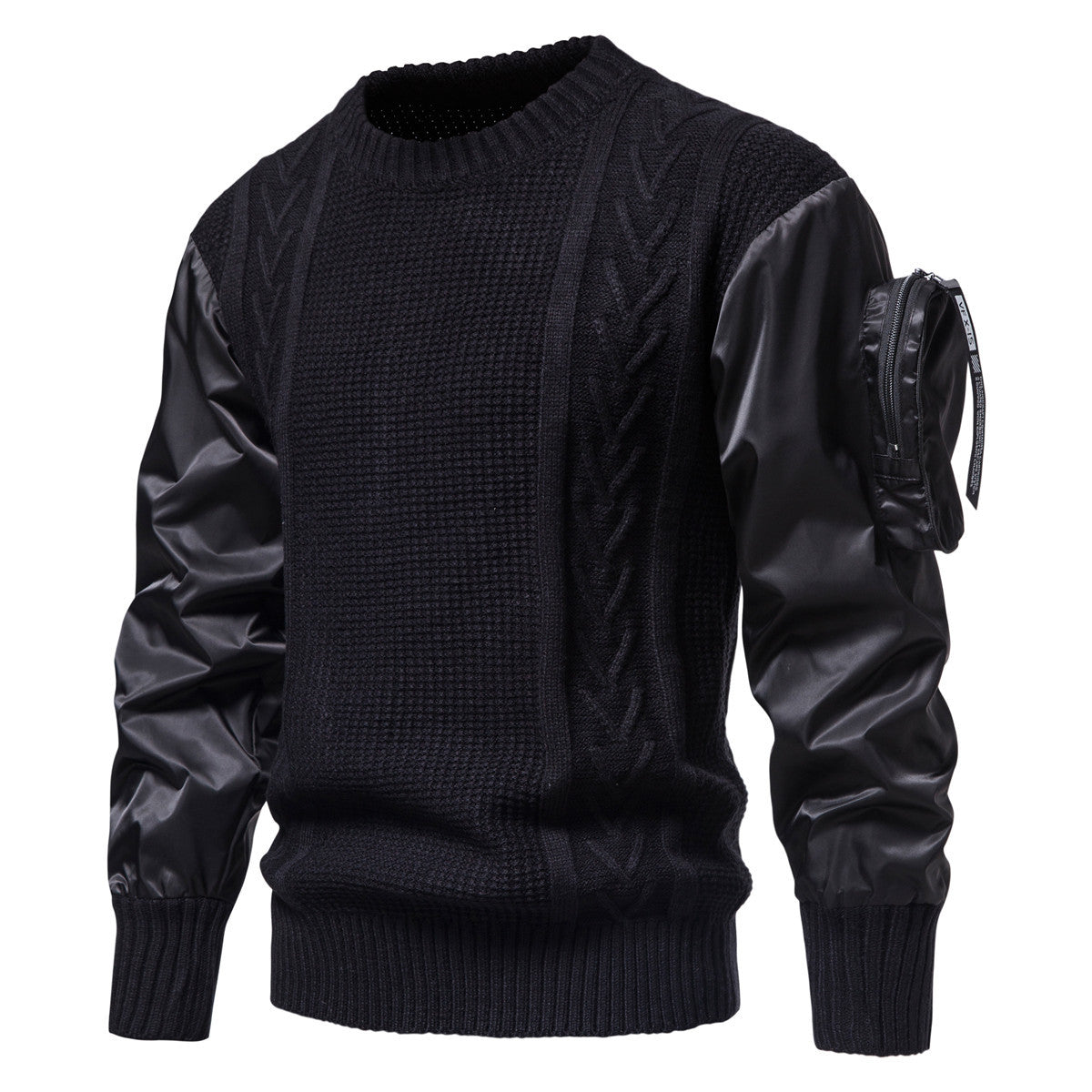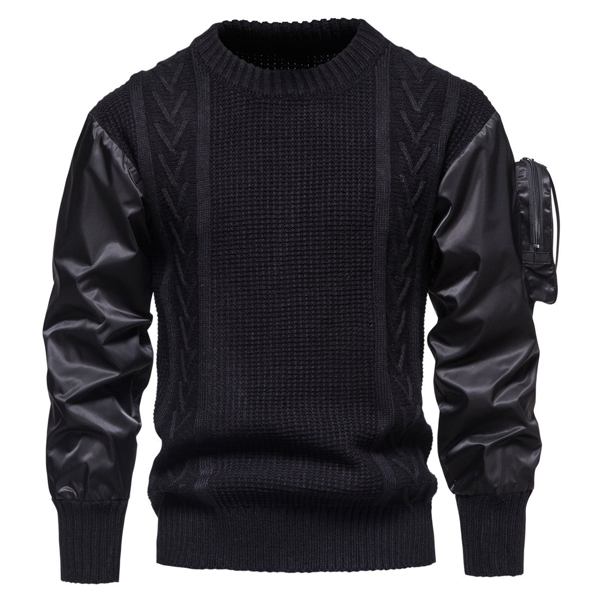 Modern design: Kombinationen av strukturerad stickning och slätt konstläder ger tröjan en trendig, urban karaktär.