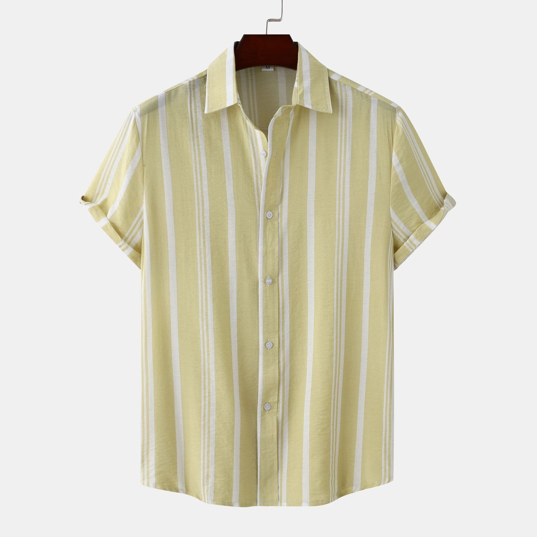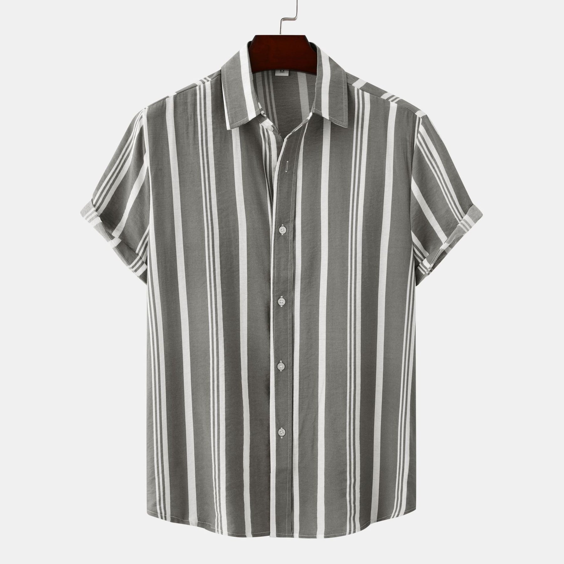 Upptäck vår herrkortärmad skjorta i modern randig stil som är både stilfull och funktionell. Denna skjorta är tillverkad av högkvalitativ, andningsbar bomull som ger dig optimal komfort även på varma dagar.