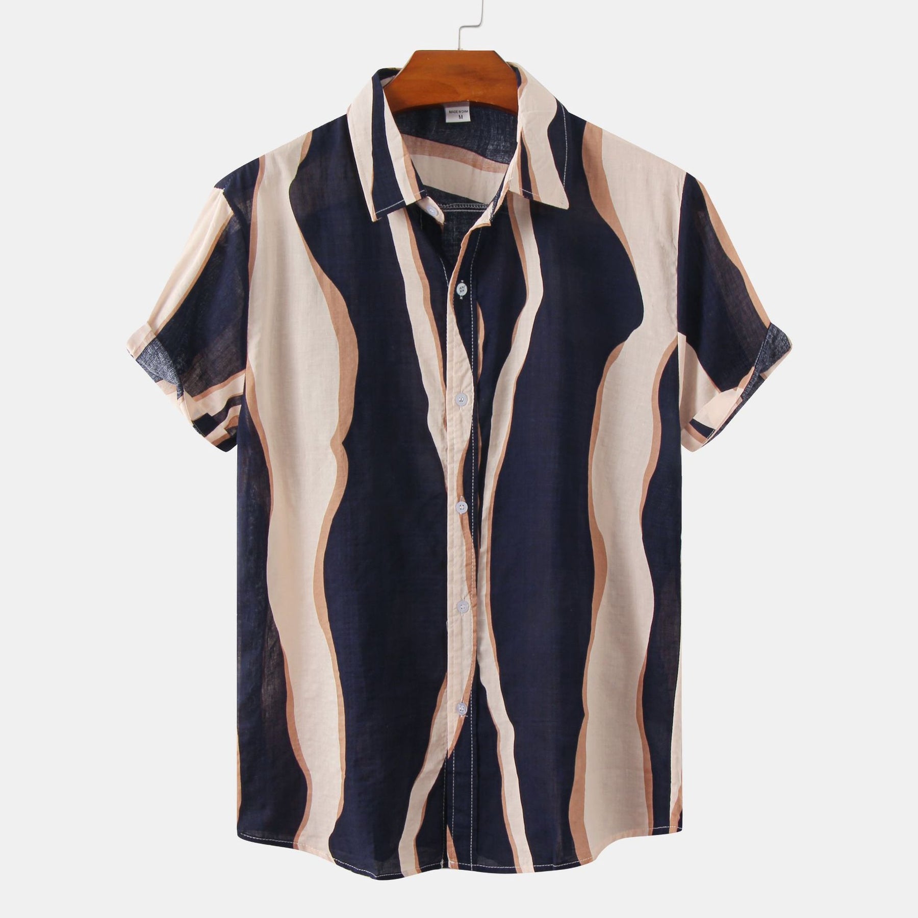 Upptäck den stiliga herrarnas kortärmade skjorta med ett unikt abstrakt mönster som ger din look en modern och elegant touch. Tillverkad av lätt och andningsbart tyg, är denna skjorta perfekt för varma dagar och ger optimal bärkomfort.