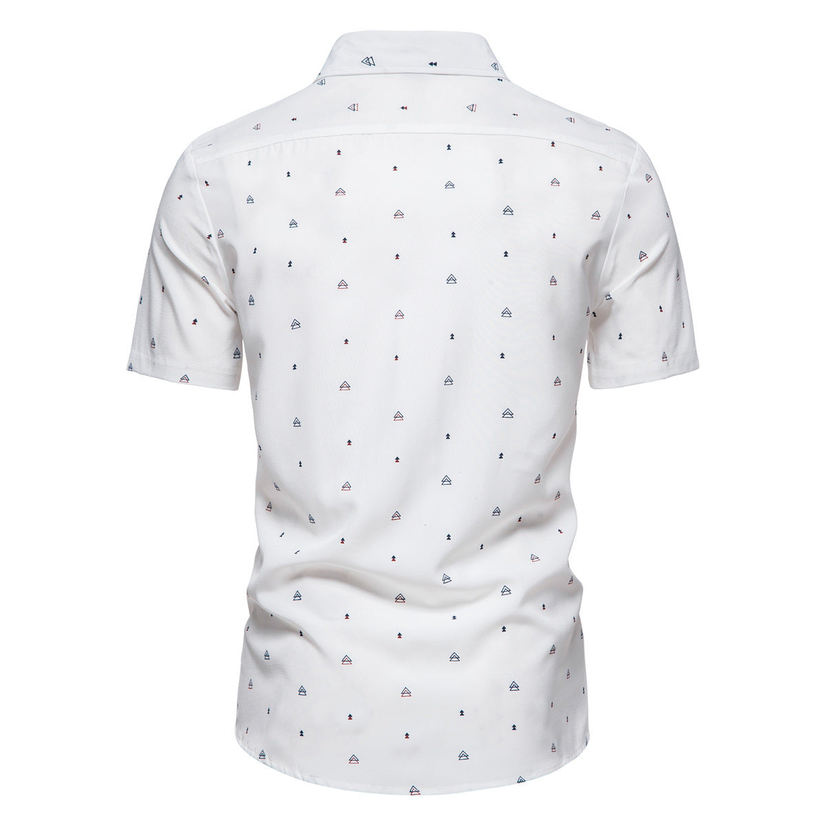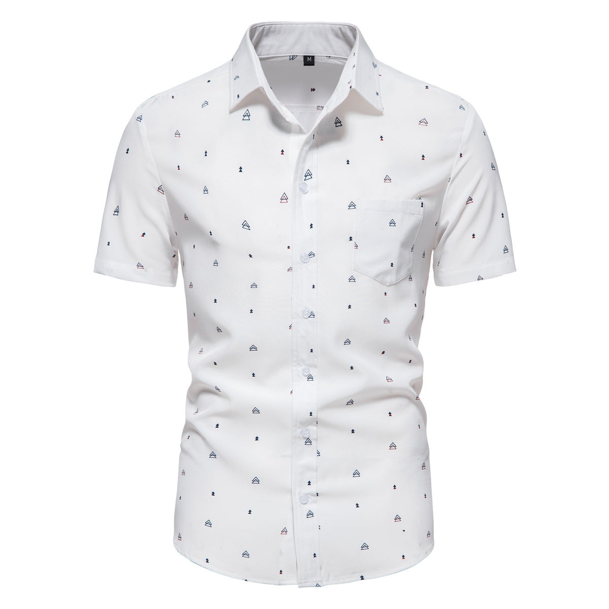 Design: Skjortan kännetecknas av ett modernt geometriskt mönster som ger en fräsch och ungdomlig look.