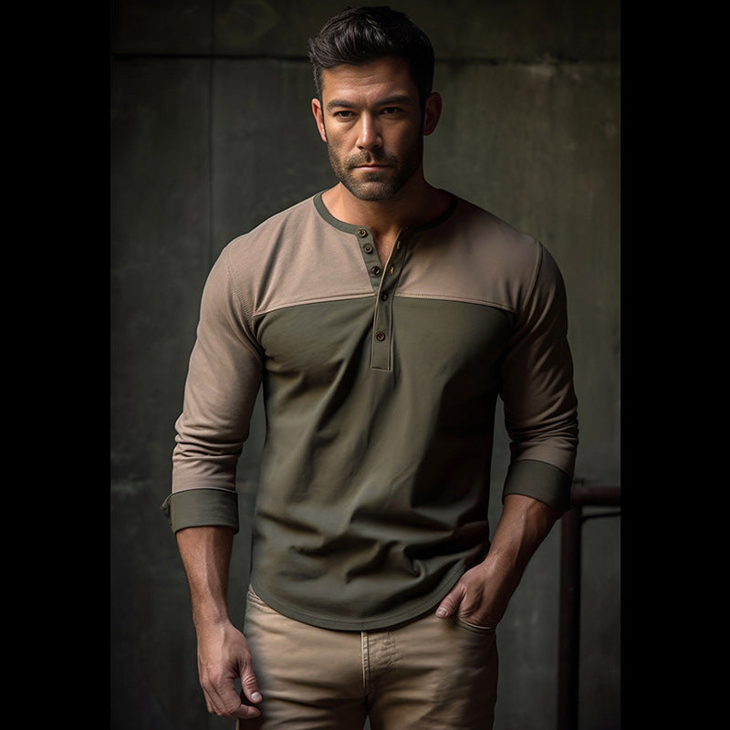 Vackert herrlangärmat Henley-tröja