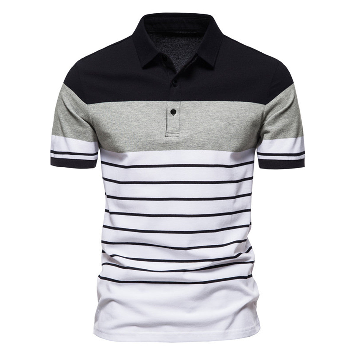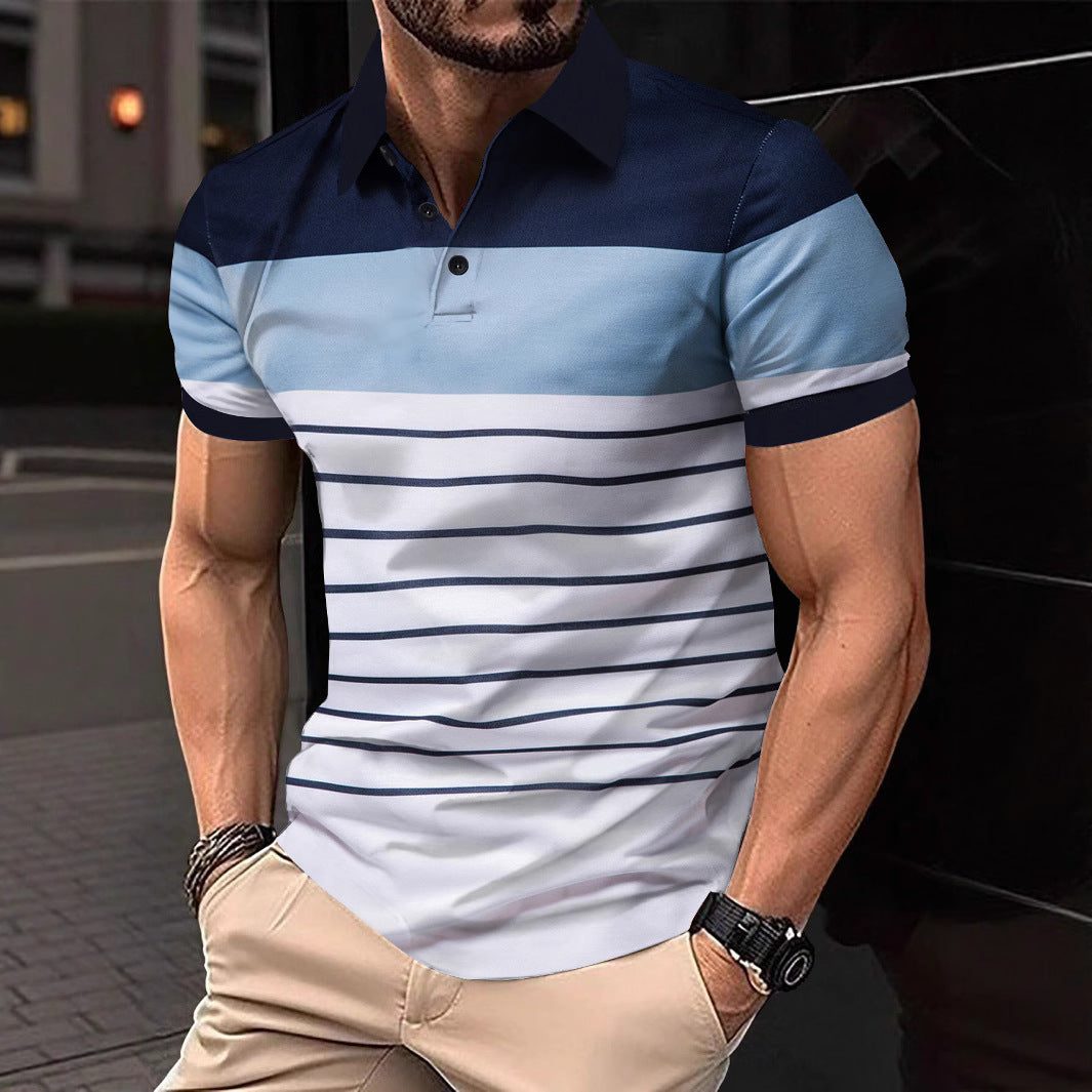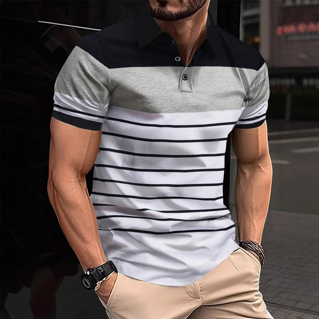 Upptäck vår herrpolo-shirt med modernt randigt mönster, perfekt för en avslappnad och stilfull look. Denna polo-shirt förenar hög kvalitet med trendig design, idealisk för fritidsaktiviteter eller avkopplande tillfällen.