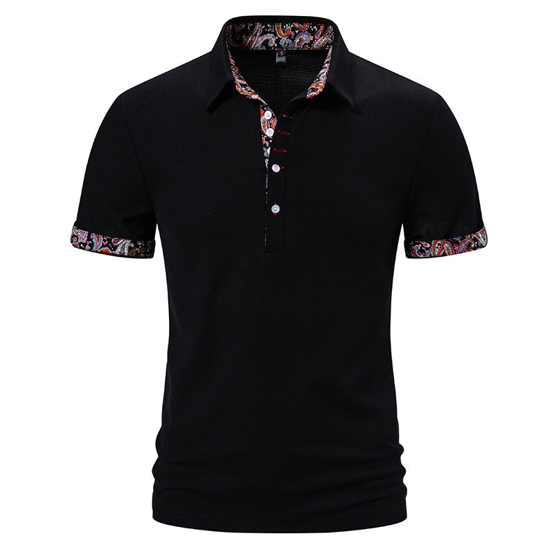 Upptäck herrpolo från Eva Jonsson – en perfekt kombination av stil och komfort. Denna polo utmärker sig genom sitt unika paisleymönster på kragen och ärmsluten, vilket ger skjortan en modern och elegant look.