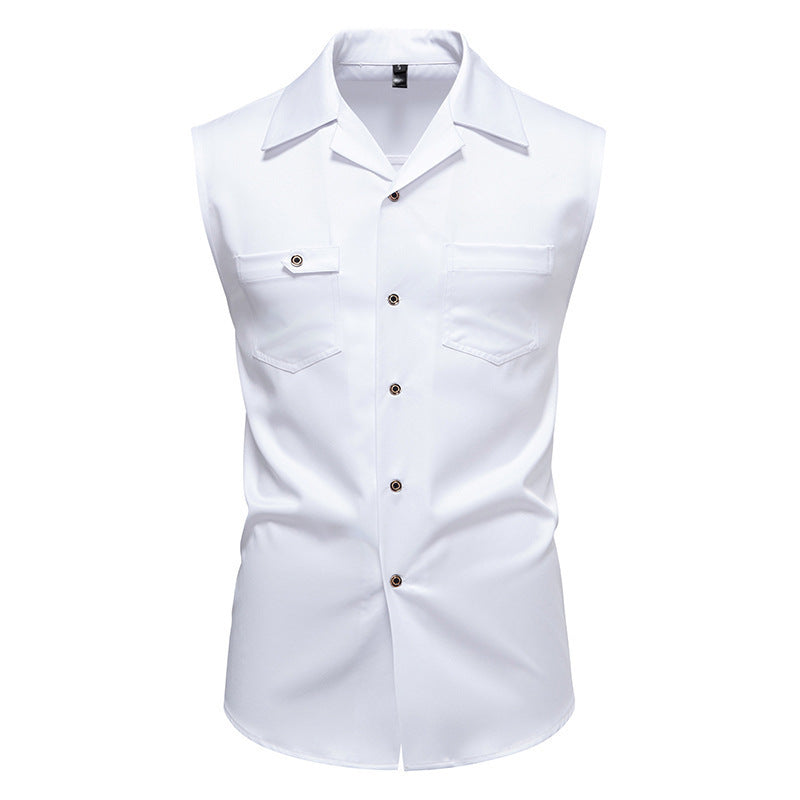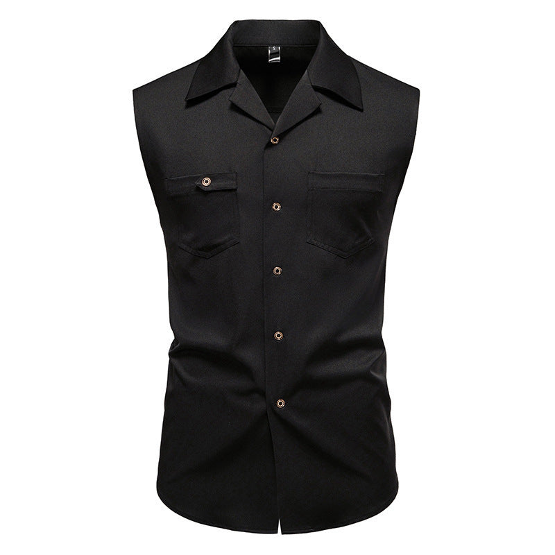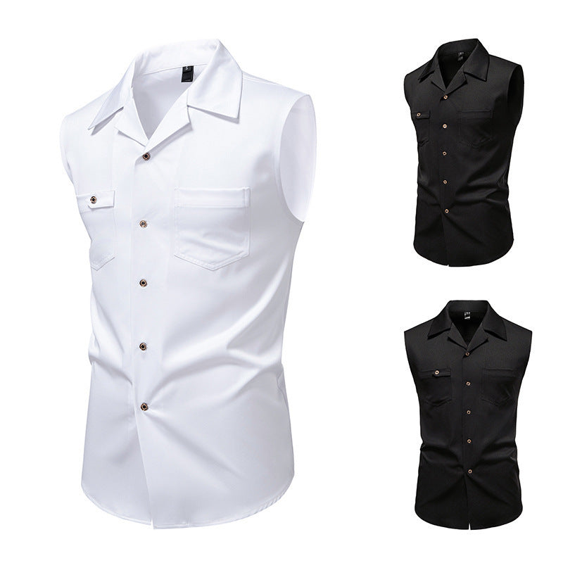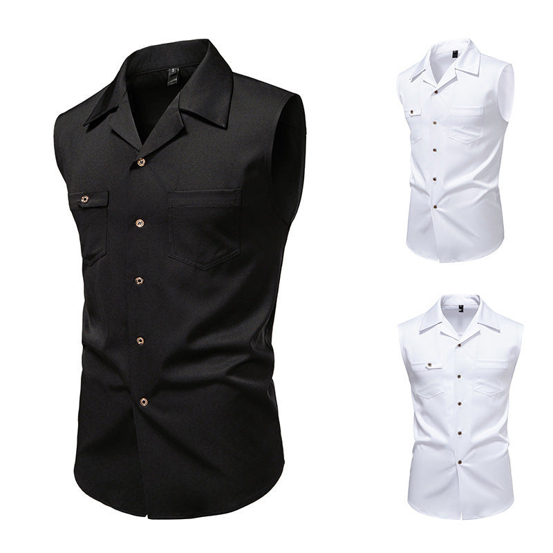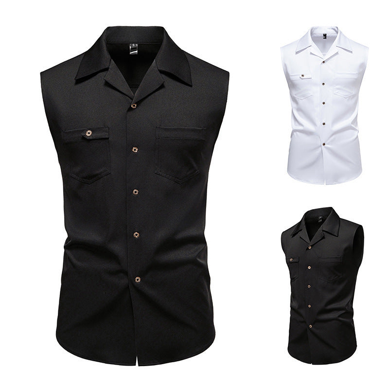 Upptäck herrens ärmlösa skjorta med praktiska bröstfickor, som är perfekt för både avslappnade och formella tillfällen. Denna skjorta förenar stil och komfort tack vare sin högkvalitativa bomullsblandning, som säkerställer andningsförmåga och en behaglig känsla.