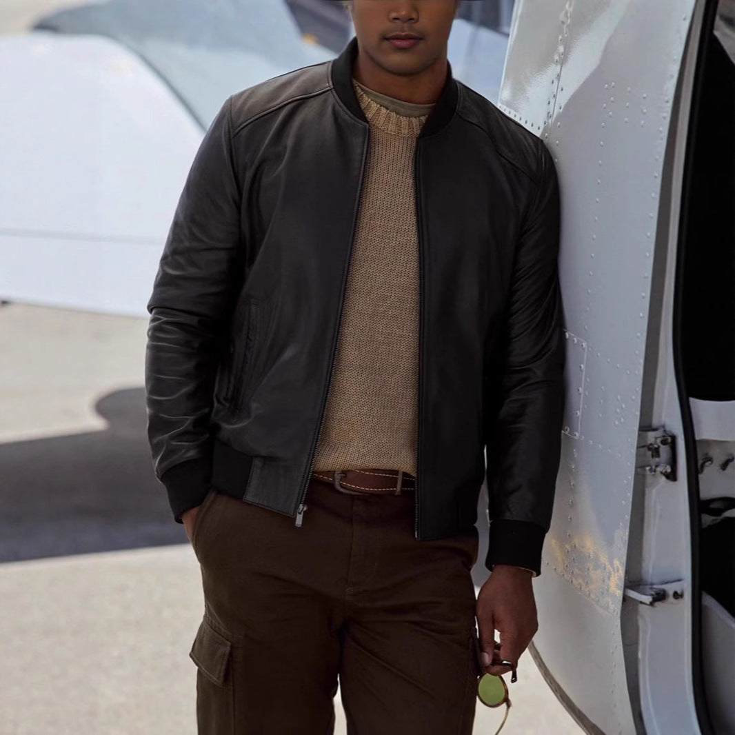 Högkvalitativt läder: Tillverkad av robust, hållbart läder, erbjuder denna jacka optimalt skydd mot vind och väder.