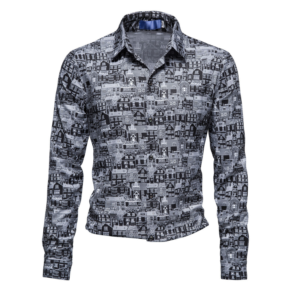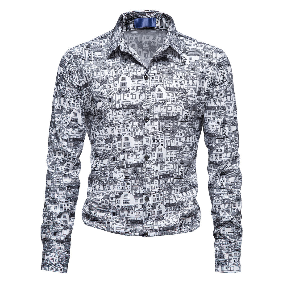 Upptäck vår herr långärmad skjorta med kreativ stadsdesign, som är både stilfull och bekväm. Denna skjorta är perfekt för modeintresserade män som vill sticka ut från massan.