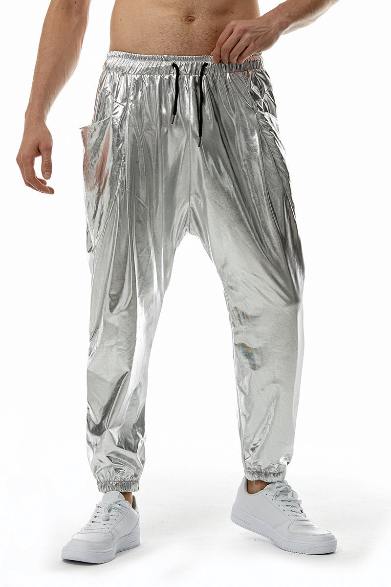 Glänsande design: Den glittrande looken gör dessa byxor till en ögonfångare, idealiska för fester eller avslappnade fritidsstylingar.