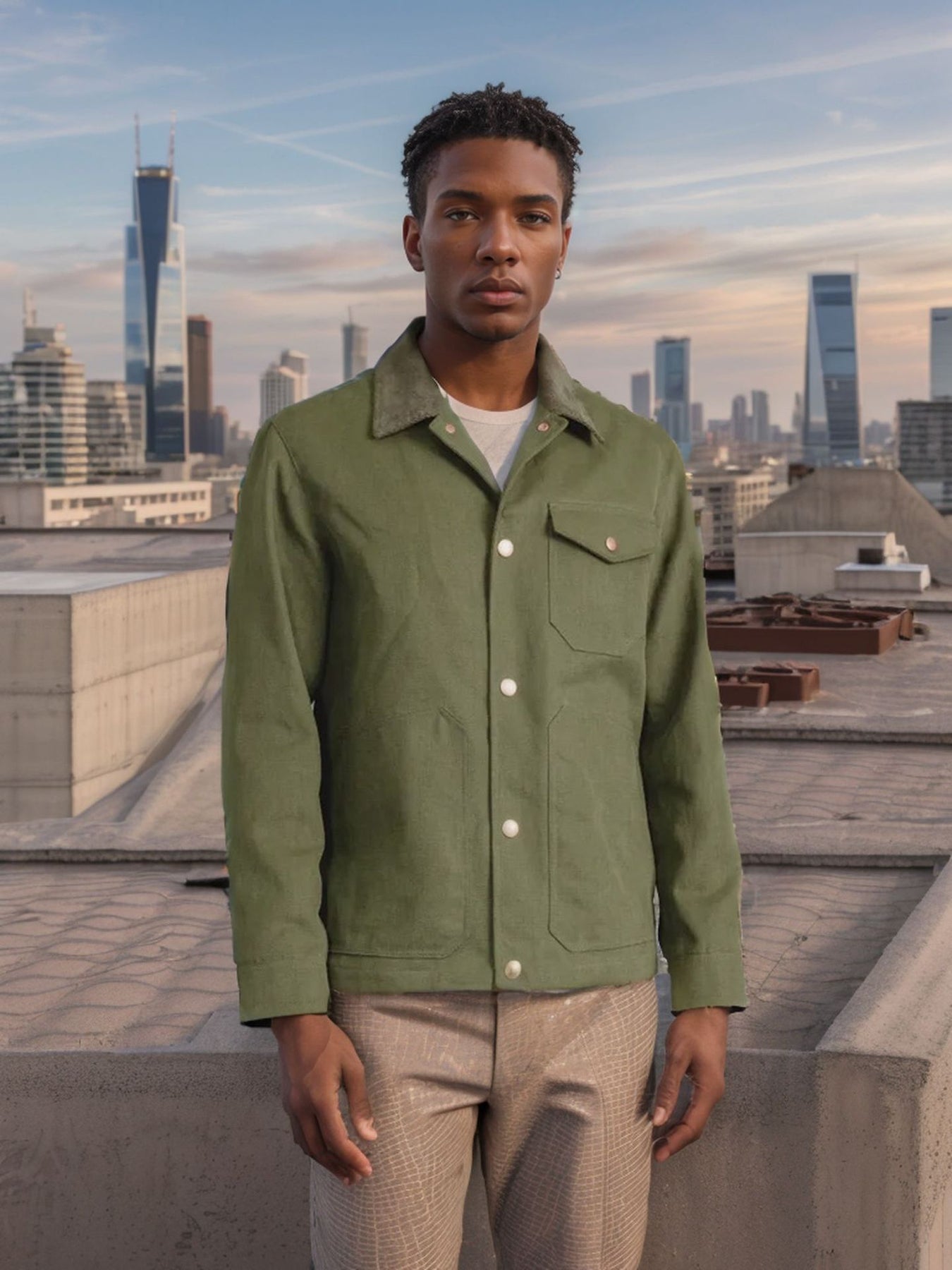 Upptäck Eva Jonssons herrjacka i bomull med worker-stil – ett tidlöst plagg som förenar både komfort och stil. Denna jacka är perfekt för vardagen och kompletterar varje avslappnad garderob.