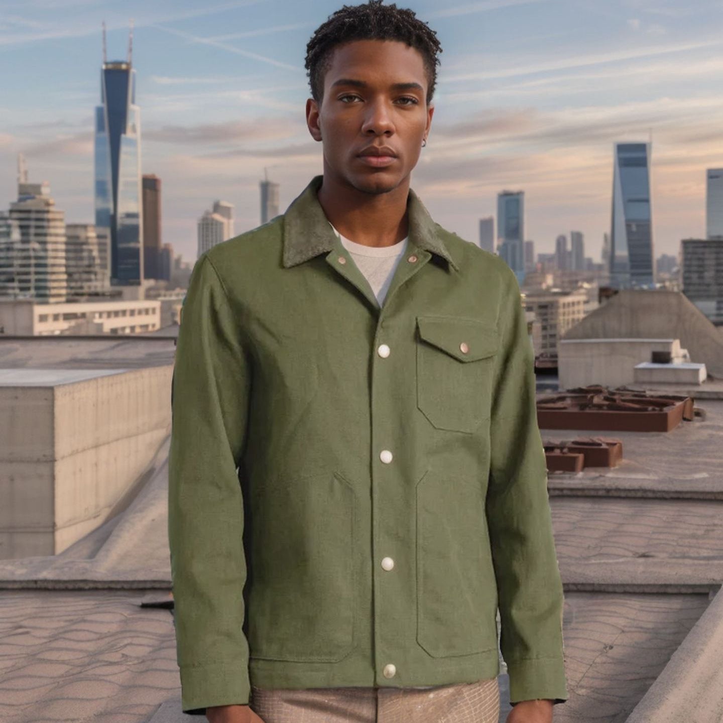 Kvalitetsmaterial: Tillverkad av 100% slitstark bomull, erbjuder denna jacka andningsförmåga och bärkomfort.