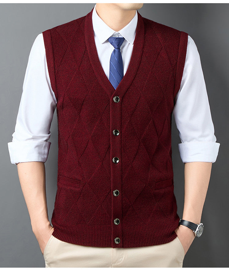 Upptäck den eleganta herrstickade västen med V-hals och klassisk rombmönster från Eva Jonsson, som är perfekt för både formella och avslappnade tillfällen. Denna väst förenar stil och komfort i en tidlös design.