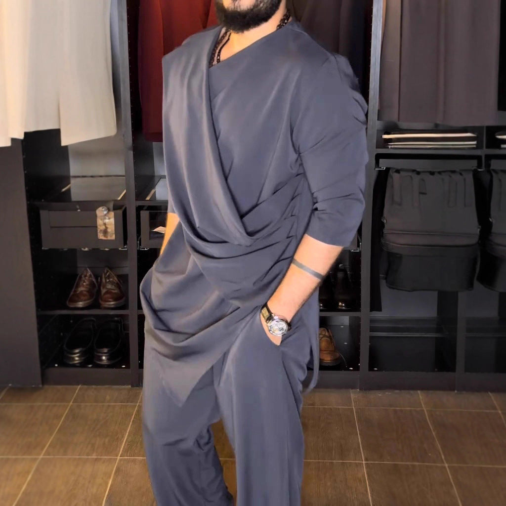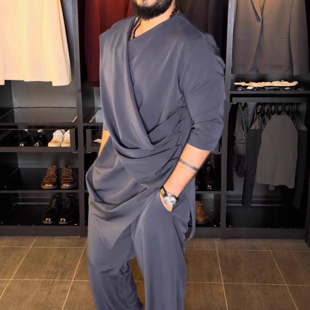 Herrars asymmetrisk tunika skjorta med draperad design Eva Jonsson